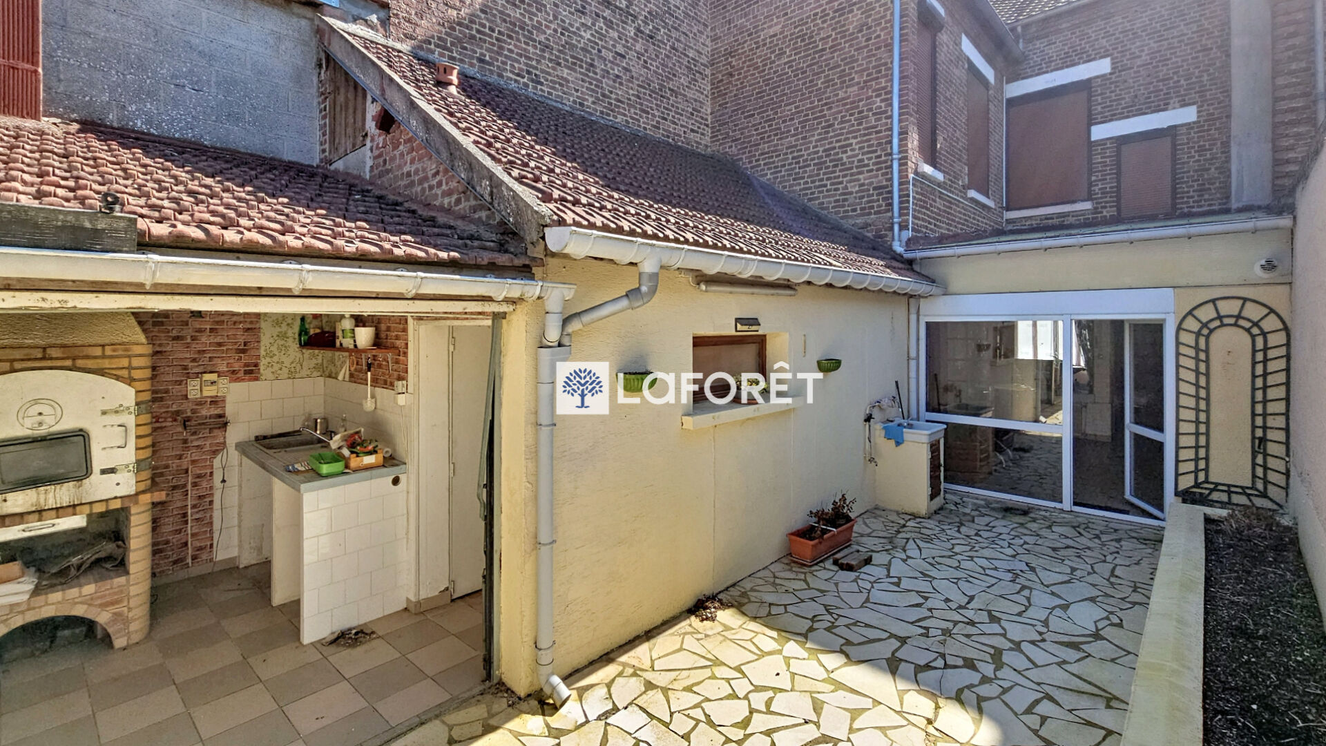 A l'extérieur une belle terrasse avec un espace aménagé avec barbecue.