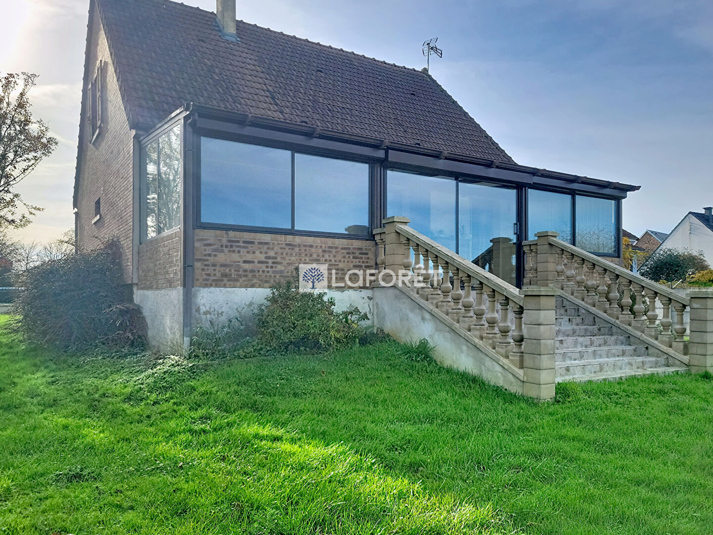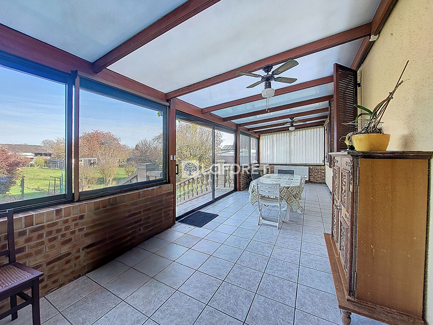 Véritable atout de la maison, la véranda de 27 m², équipée de volets roulants, prolonge agréablement l'espace de vie et permet de profiter du jardin en toute saison.