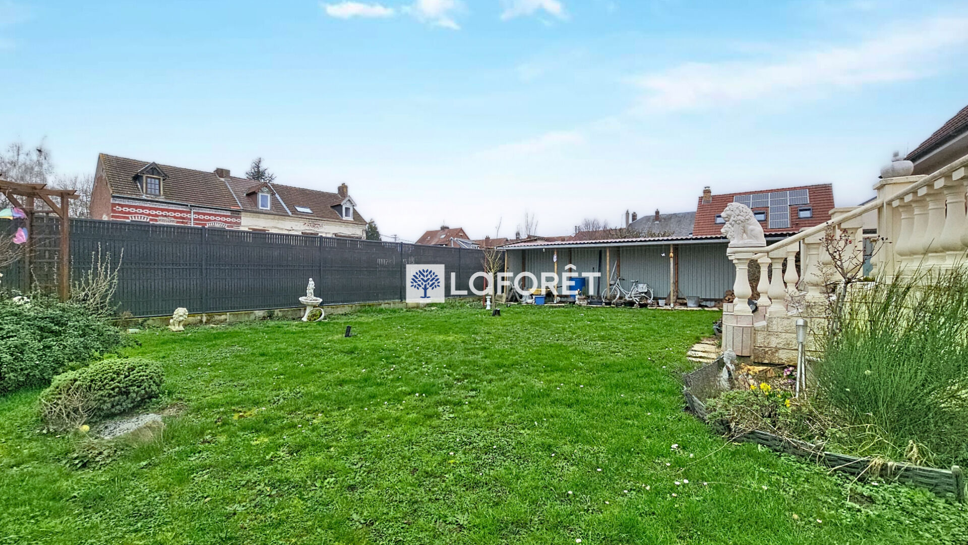 Sur une parcelle de terrain de plus de 430 m², comprenant une terrasse, un jardin clos et deux portails.