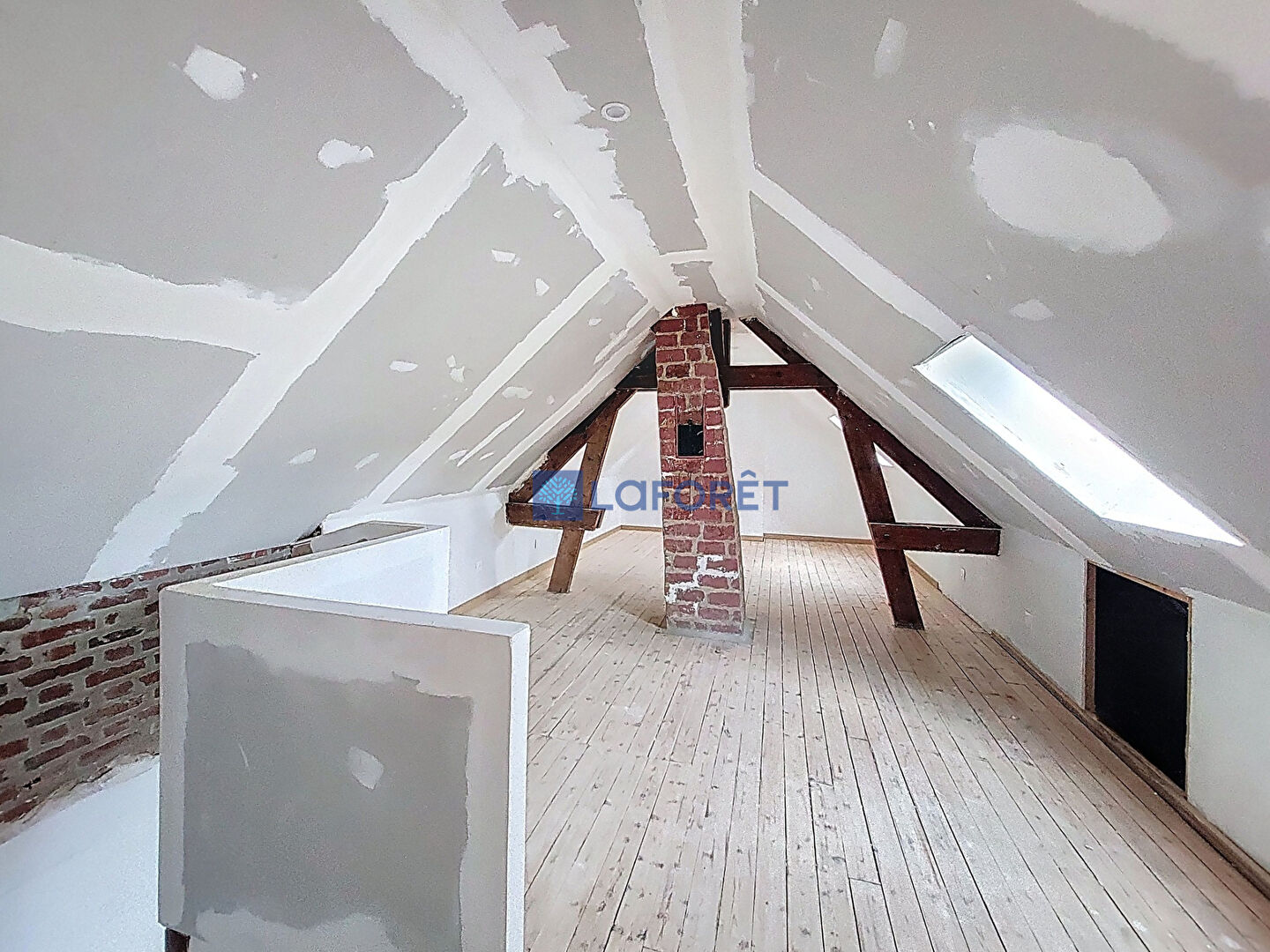 Vous trouverez également une chambre confortable, une salle de bains pratique et des toilettes. À l'étage, un grand palier desservant une belle chambre vous attend, parfait pour accueillir famille ou amis.