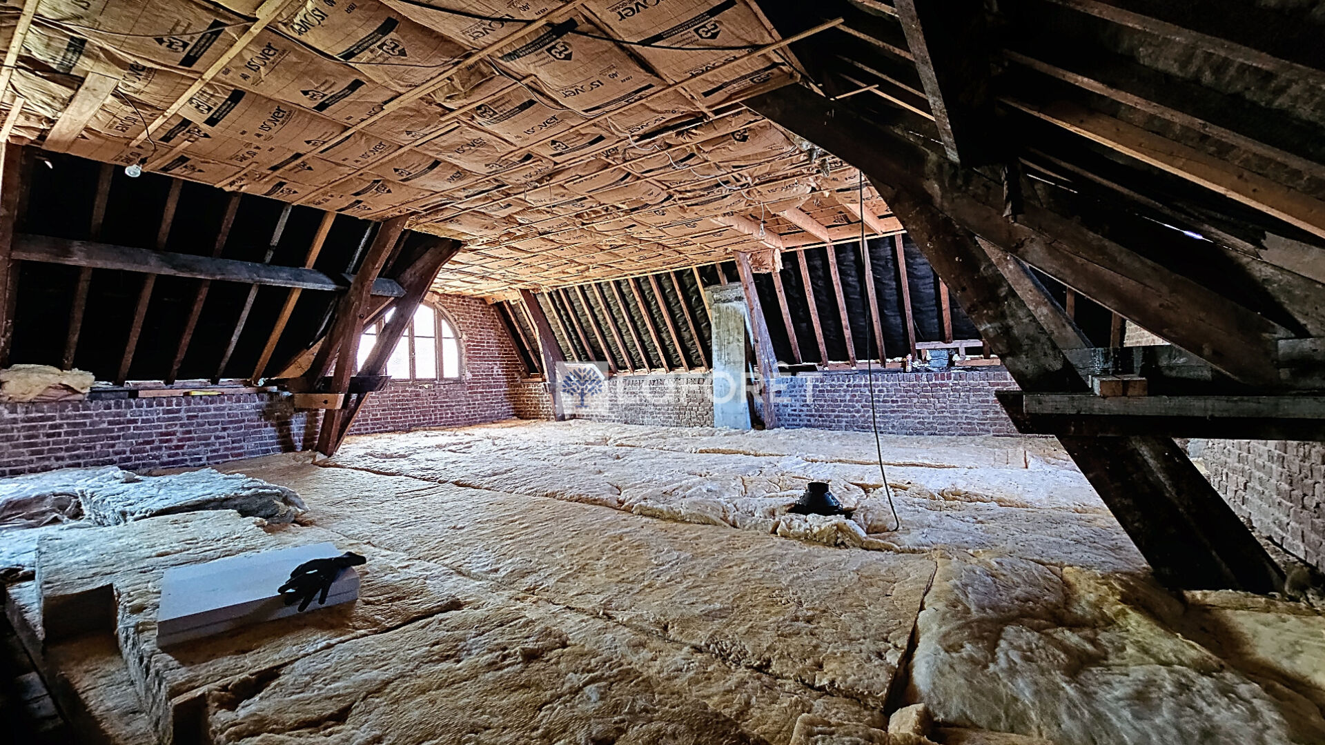 À l'étage, un couloir mène à une troisième chambre et à un grenier déjà divisé en deux espaces, offrant un beau potentiel de stockage ou d'aménagement supplémentaire.