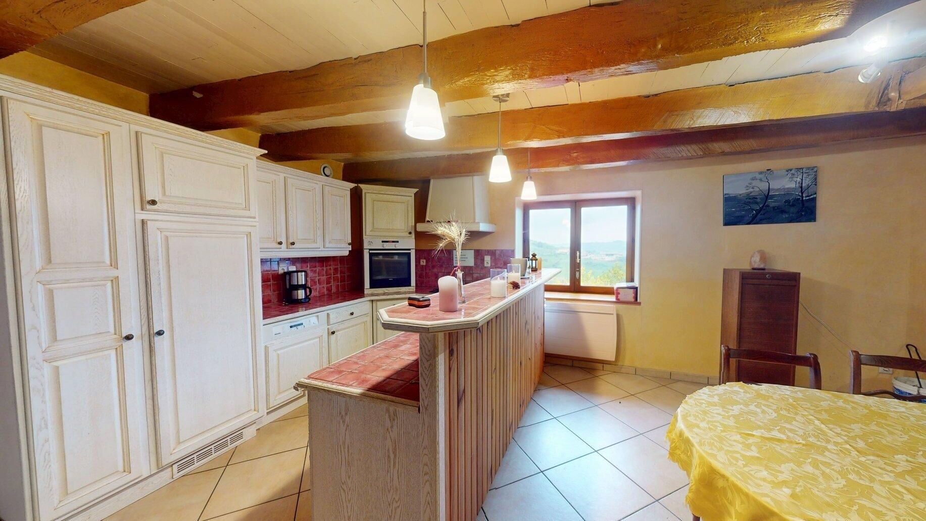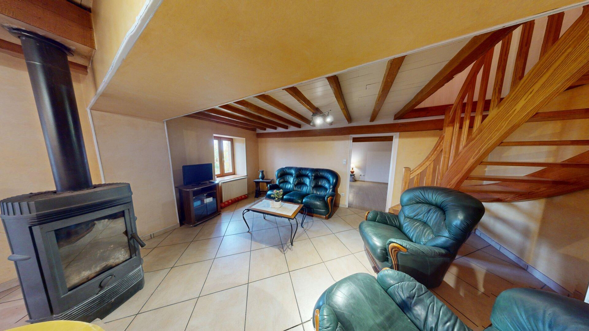 Elle dispose d'une belle pièce de vie de 42 m² avec cuisine équipée et poêle à bois, Deux grandes chambres (18,9 m² et 27,7 m²) , d'une Salle d'eau et WC séparé