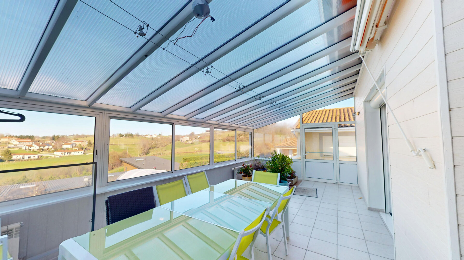 À l'extérieur, vous profiterez d'un grand terrain de 2 015 m², d'une terrasse, d'un balcon et d'une piscine couverte par un dôme, permettant d'en prolonger l'utilisation sur une grande partie de l'année.