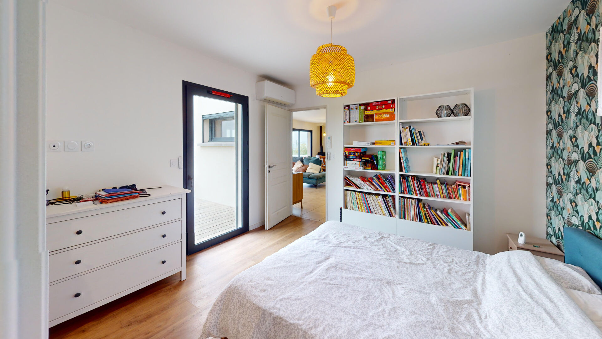 Elle se compose d'une vaste pièce de vie avec cuisine ouverte donnant sur la terrasse et la piscine, de trois chambres et une suite parentale avec salle d'eau privative et dressing, d'une buanderie et d'un grand garage.