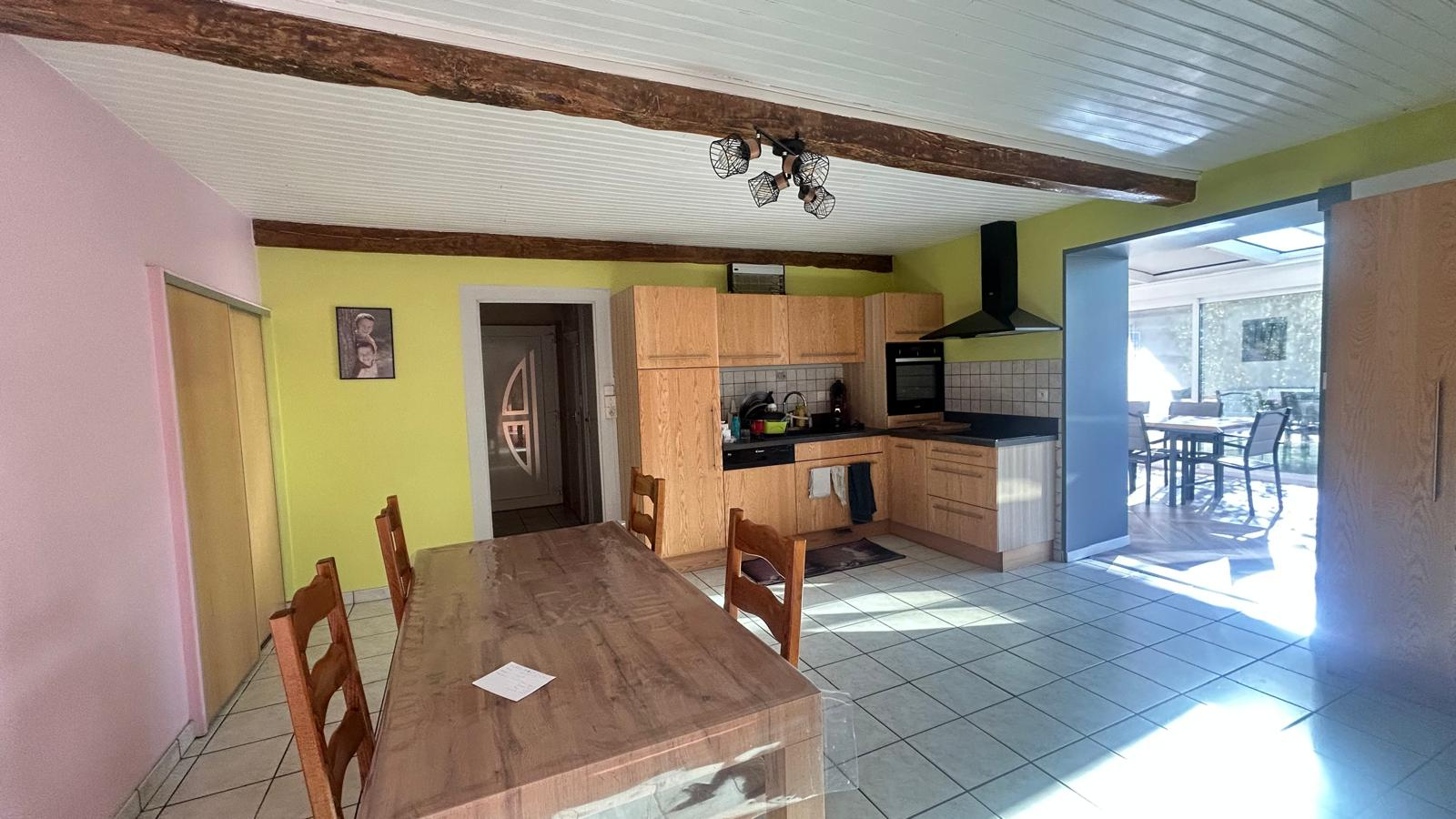 Elle se compose de plusieurs chambres, d'une cuisine équipée, d'un séjour chaleureux avec cheminée, ainsi que d'une véranda lumineuse idéale pour profiter de la lumière naturelle toute l'année.