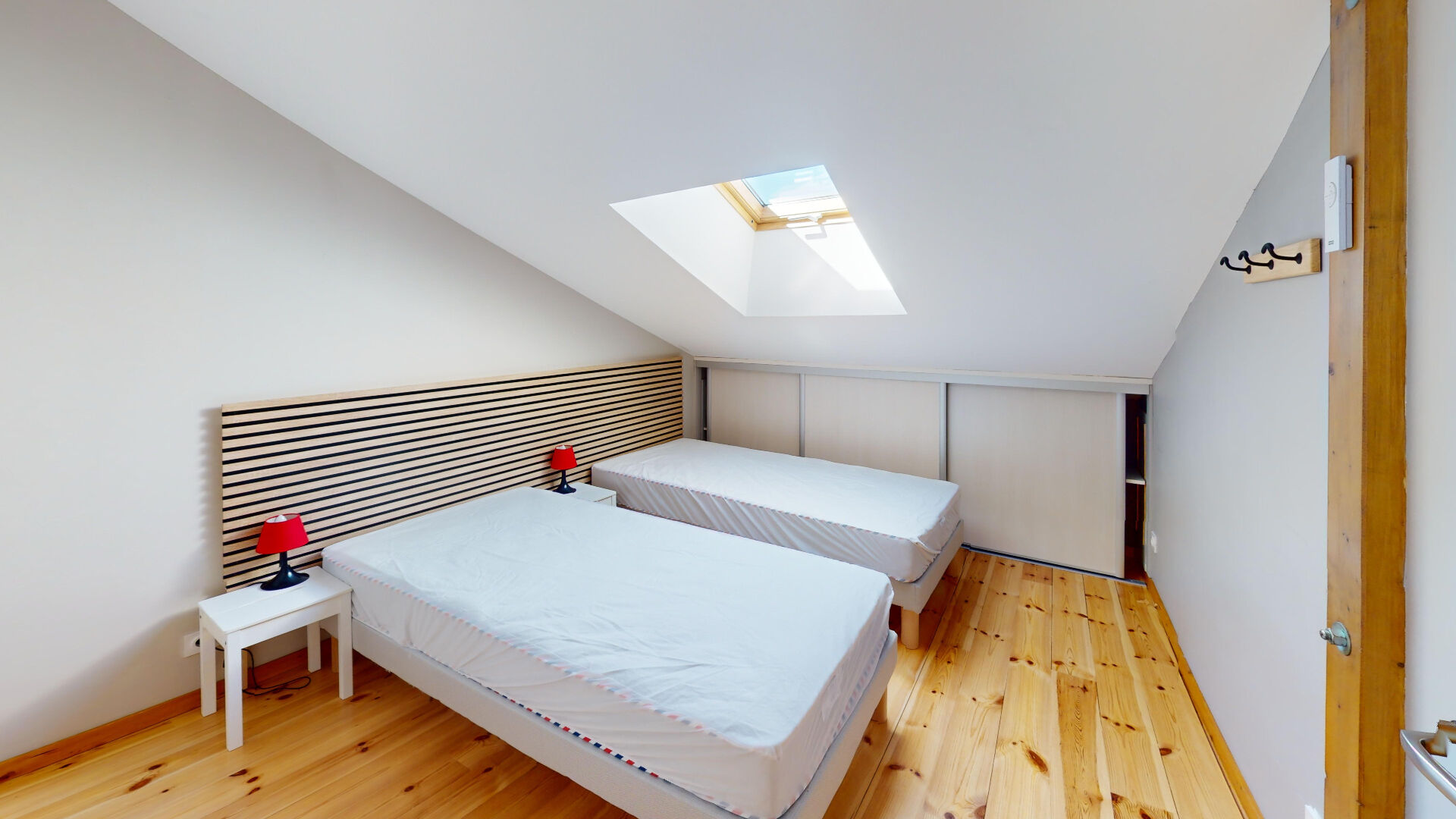 Elle se compose de : 2 chambres, une mezzanine avec espace bureau, une pièce de vie conviviale, une salle d'eau, un WC et une terrasse pour profiter des beaux jours.