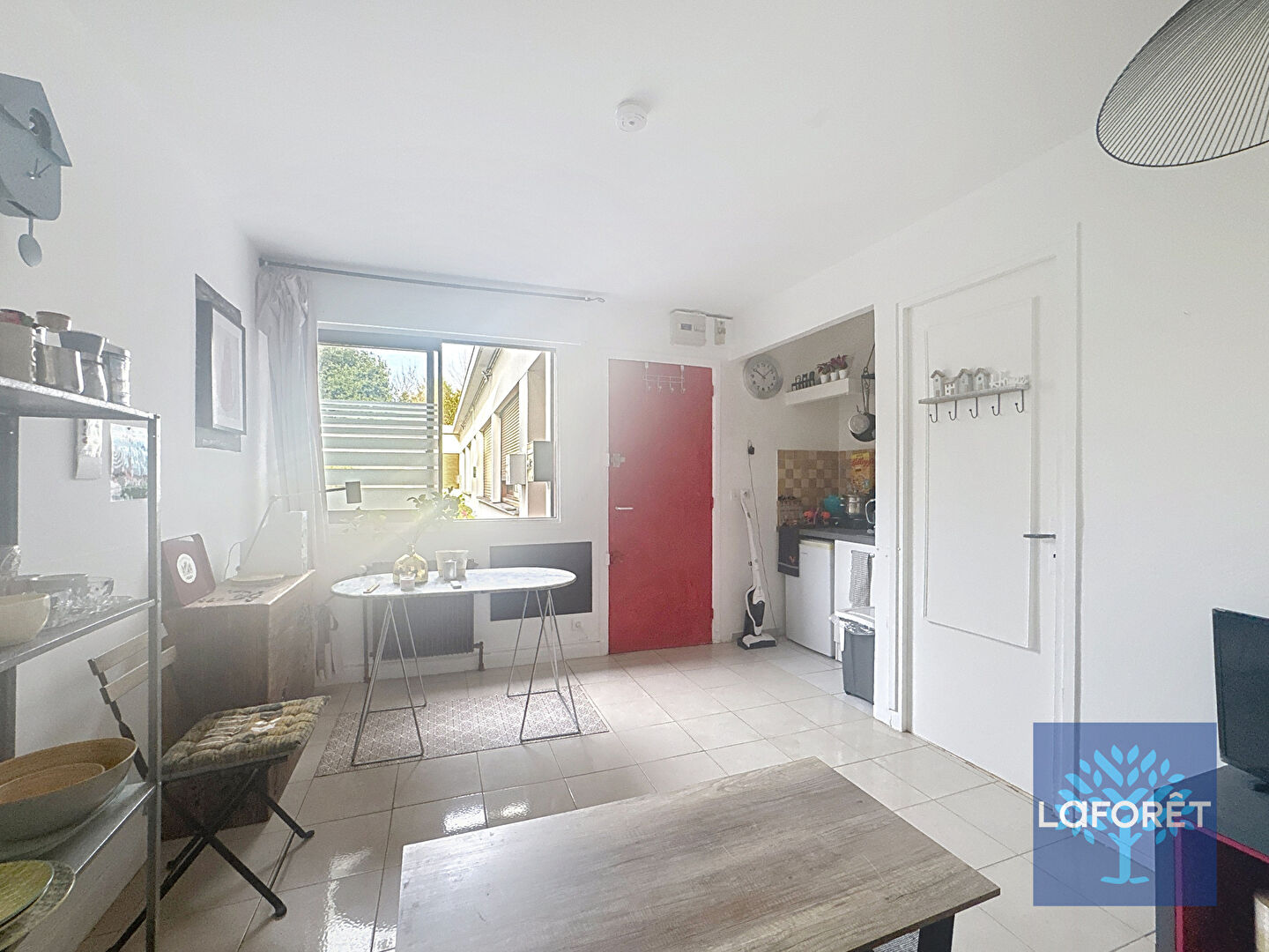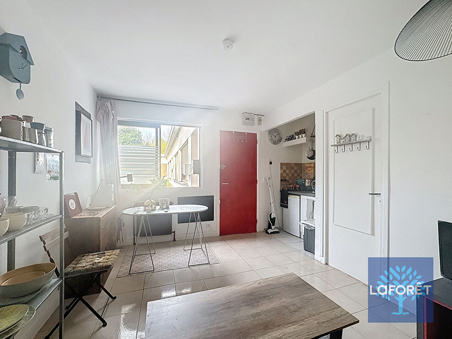 Appartement rare en rez-de-chaussée, 2 pièces de 24.92 m², offrant : un séjour avec coin cuisine, une chambre sous un puits de lumière et une salle de bains avec WC et raccord lave linge. Volet roulant électrique.