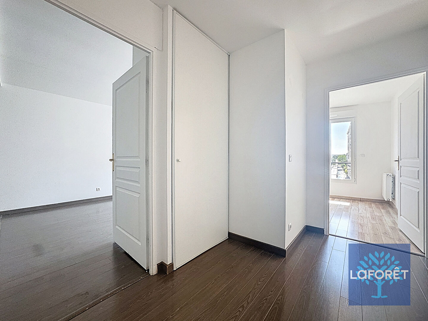 Le bien se compose d'un séjour lumineux, avec une cuisine ouverte aménagé, 2 chambres avec rangements, salle de bains + WC séparés, Rangements intégrés