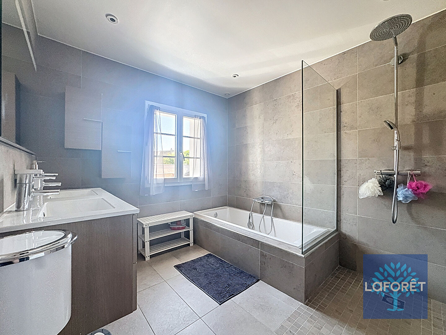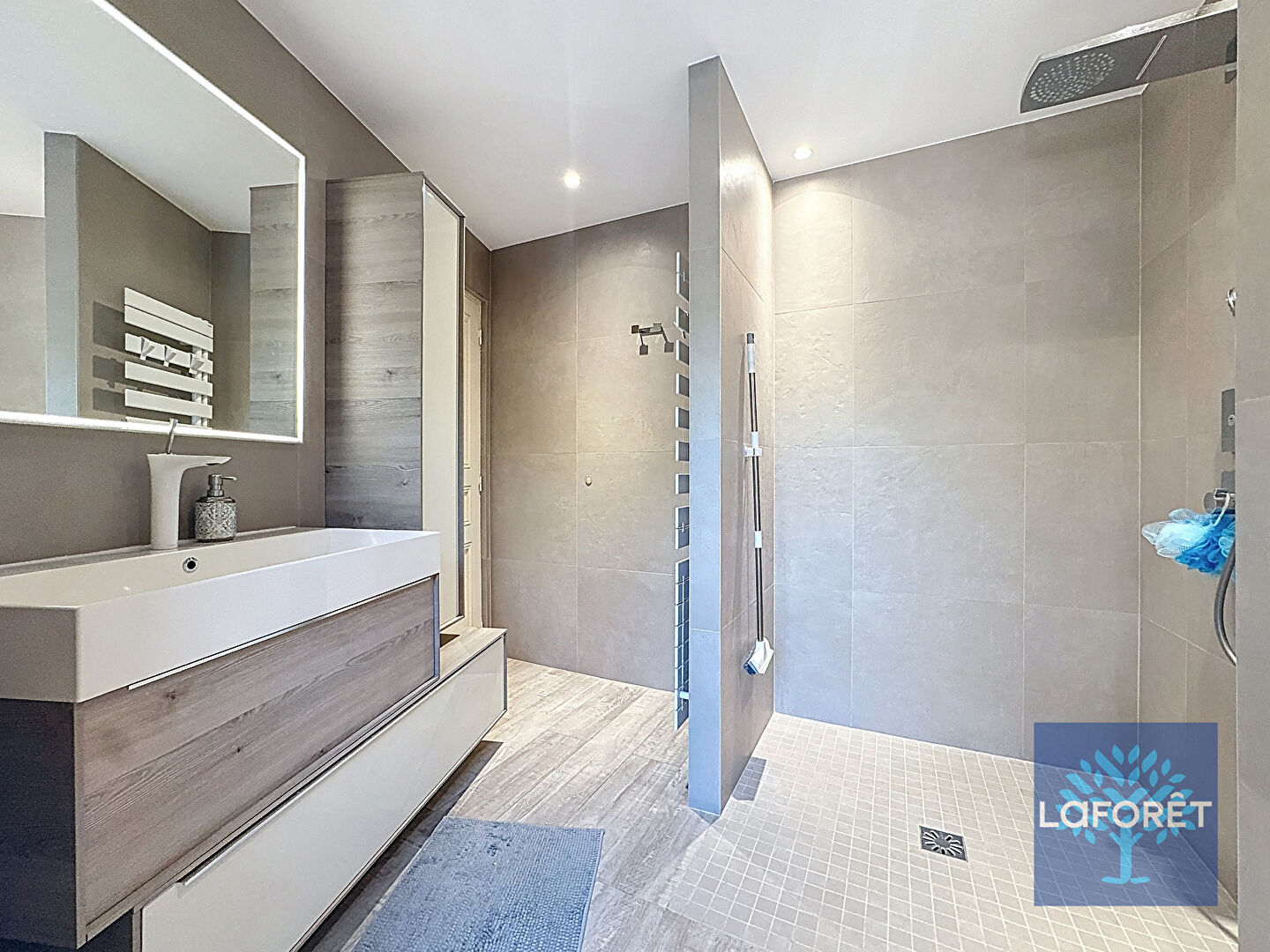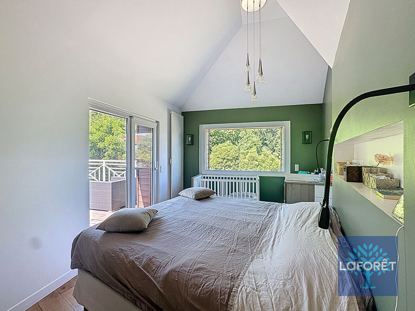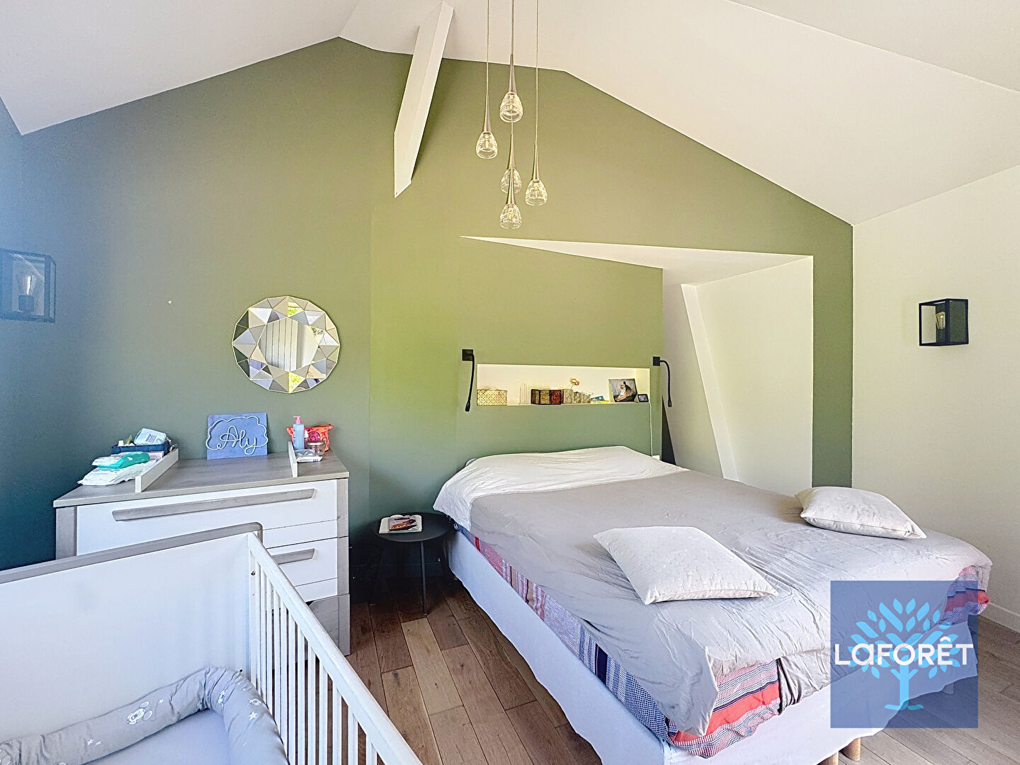 Au rez-de-chaussée, vous y trouverez une entrée, une salle à manger avec une cuisine, ouverte, aménagée, un spacieux séjour double donnant accès à une terrasse et au jardin de 800 m², WC, garage et buanderie