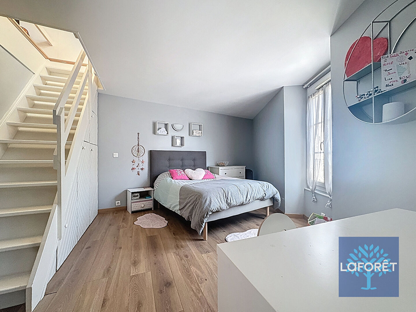 Premier étage, un palier desservant, une chambre, une chambre avec un accès à une mezzanine, une suite parentale avec dressing et salle d'eau/WC, une salle de bain, WC séparé.