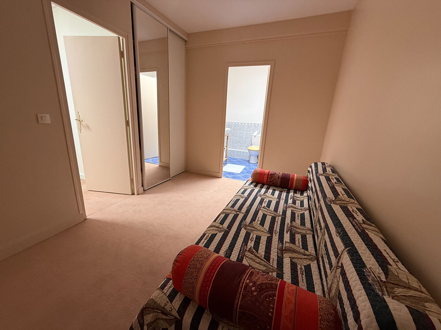 Grand palier desservant une deuxième chambre avec salle d'eau et WC , Pièce avec placards (chambre d'appoint, bureau ou dressing), Rangements sous combles