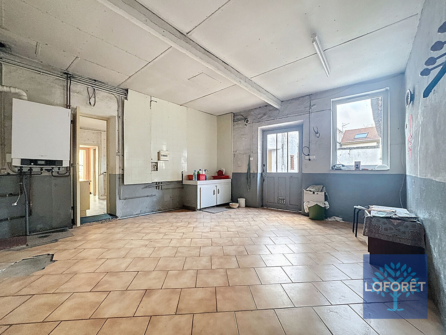 Offrant une cour intérieure, au rez-de-chaussée vous trouverez une spacieuse pièce de vie, une cuisine fermée avec cellier, une salle de bains, un WC et un séjour.