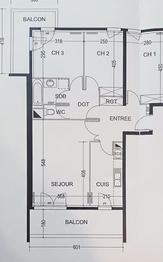 - Trois chambres, dont une disposant d'un accès direct au second balcon