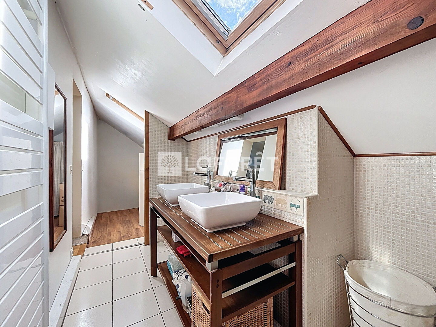 A l'étage, vous trouverez 2 chambres lumineuses et spacieuses communicantes sur une salle de bains avec WC ainsi que de nombreux rangements.