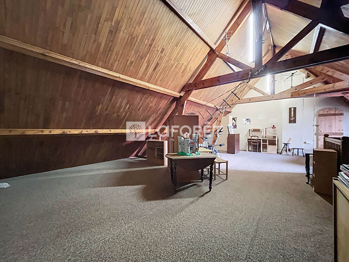 À l'étage un immense espace à exploiter ! Plus de 4 mètres de hauteur sous plafond. Possibilité d'aménager 2 voire 3 chambres avec une création de salle de bains et WC. Très gros potentiel sur place !
