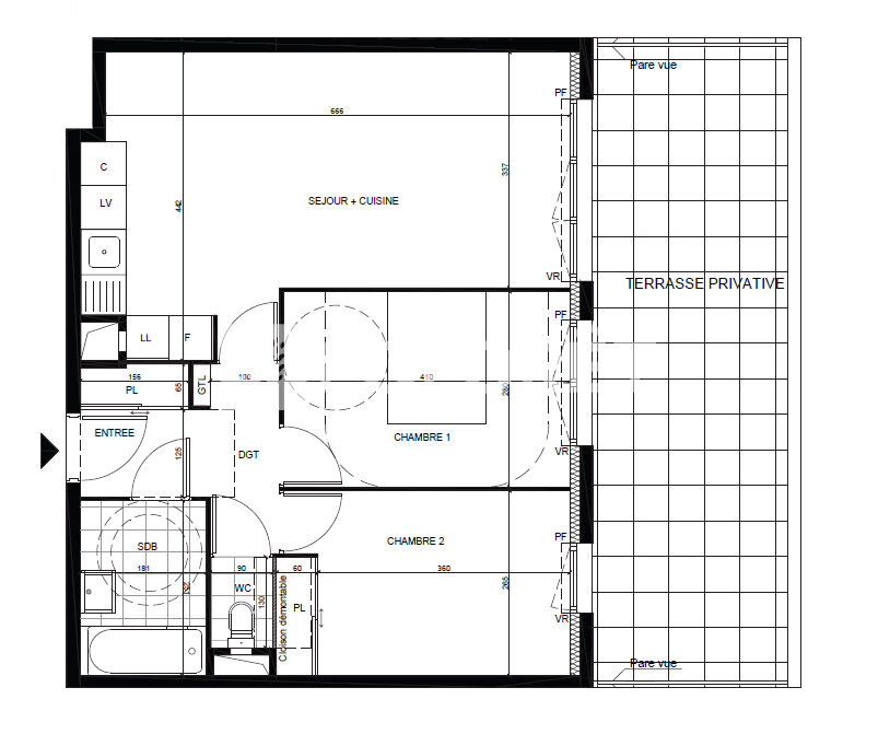 - un grand séjour lumineux de 26 m² , vue sur la terrasse ;