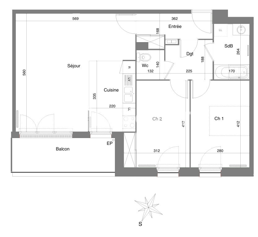 Vous profiterez d'un séjour lumineux avec une cuisine équipée et aménagée donnant sur une belle terrasse. S'ajoute 2 chambres, une salle de bains ainsi que des WC séparés.