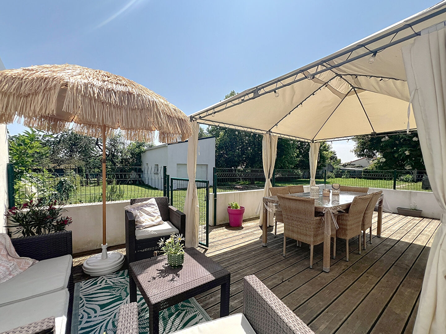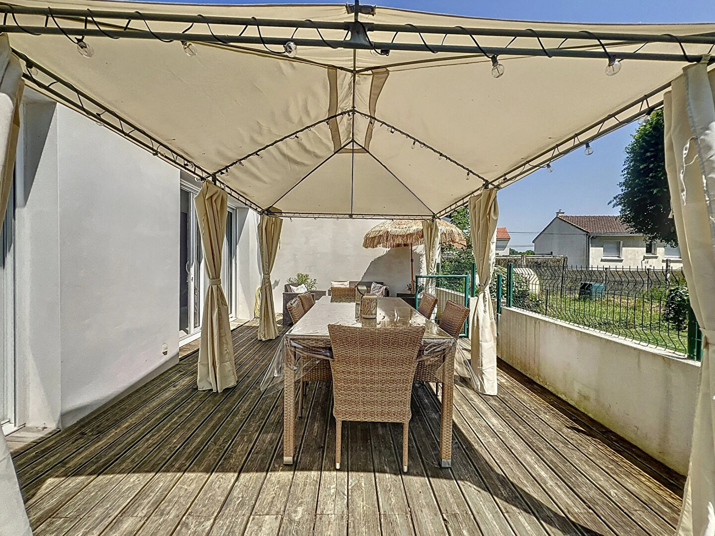 Dès l'entrée, vous serez séduits par une pièce de vie de 70 m² lumineuse, intégrant une cuisine ouverte équipée, un salon cosy et une salle à manger conviviale.