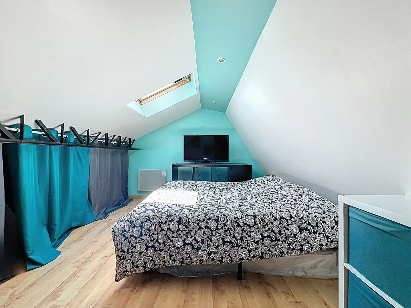 Côté nuit, le rez-de-chaussée offre trois chambres et une salle de bains complète (douche et baignoire). À l'étage, une chambre mansardée avec un point d'eau complète l'espace.