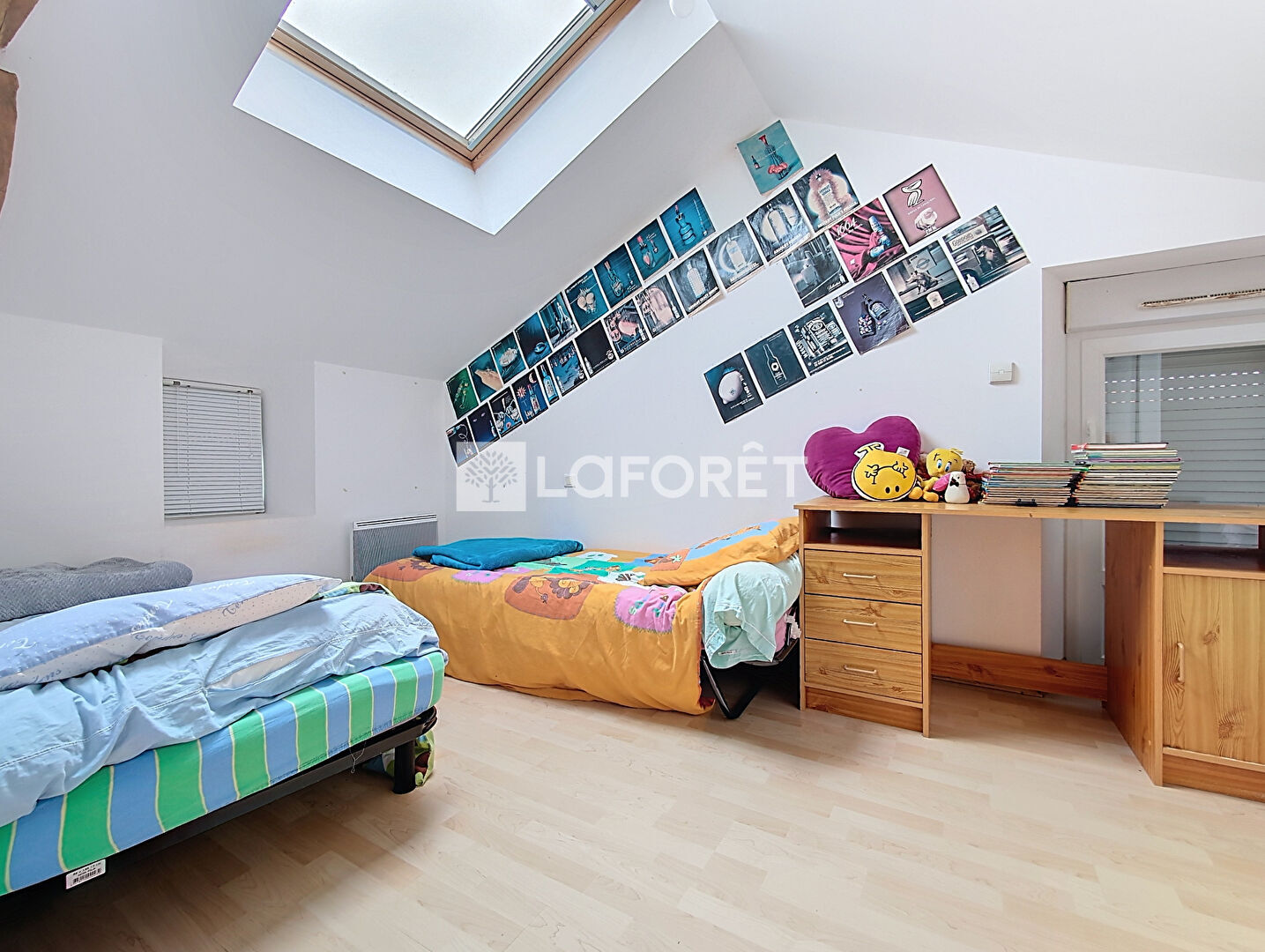 A l'étage, 3 chambres, une salle d'eau, un WC et un grenier isolé.