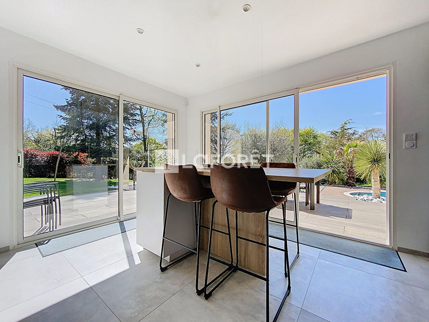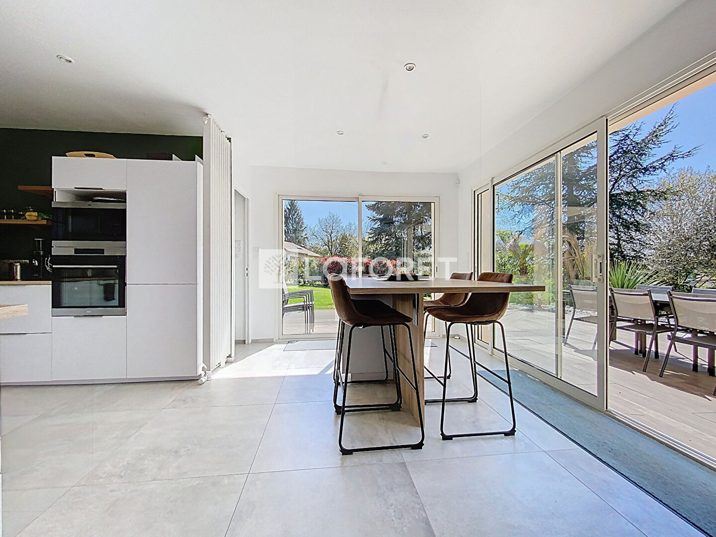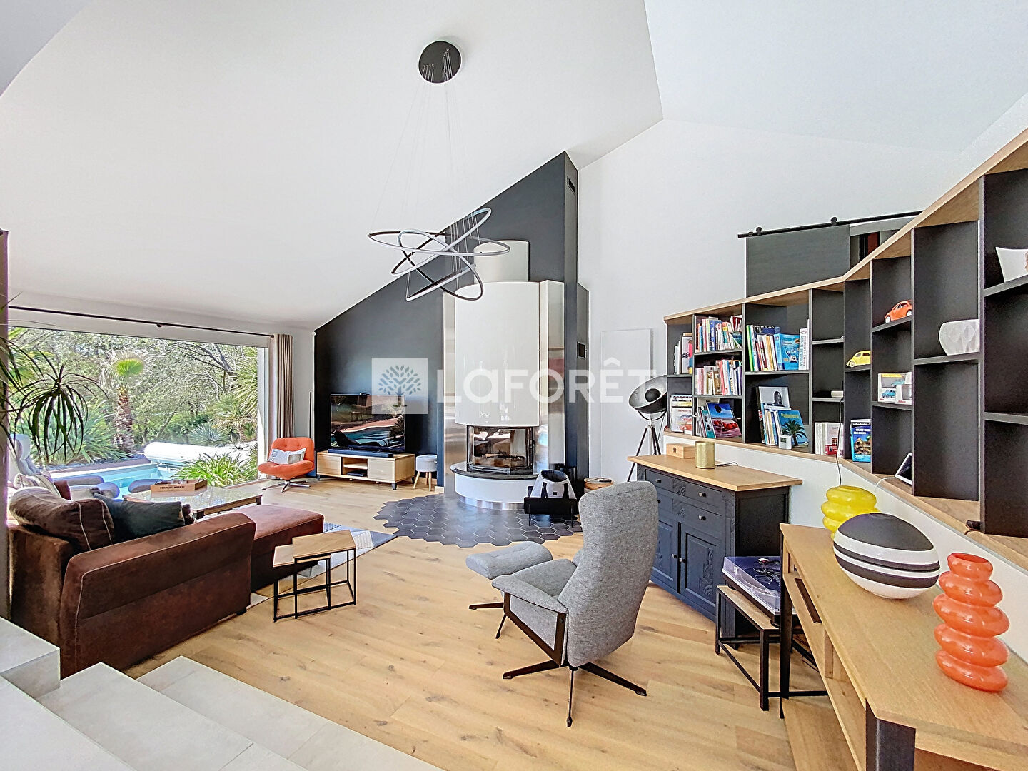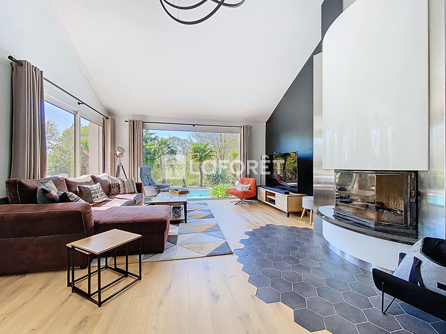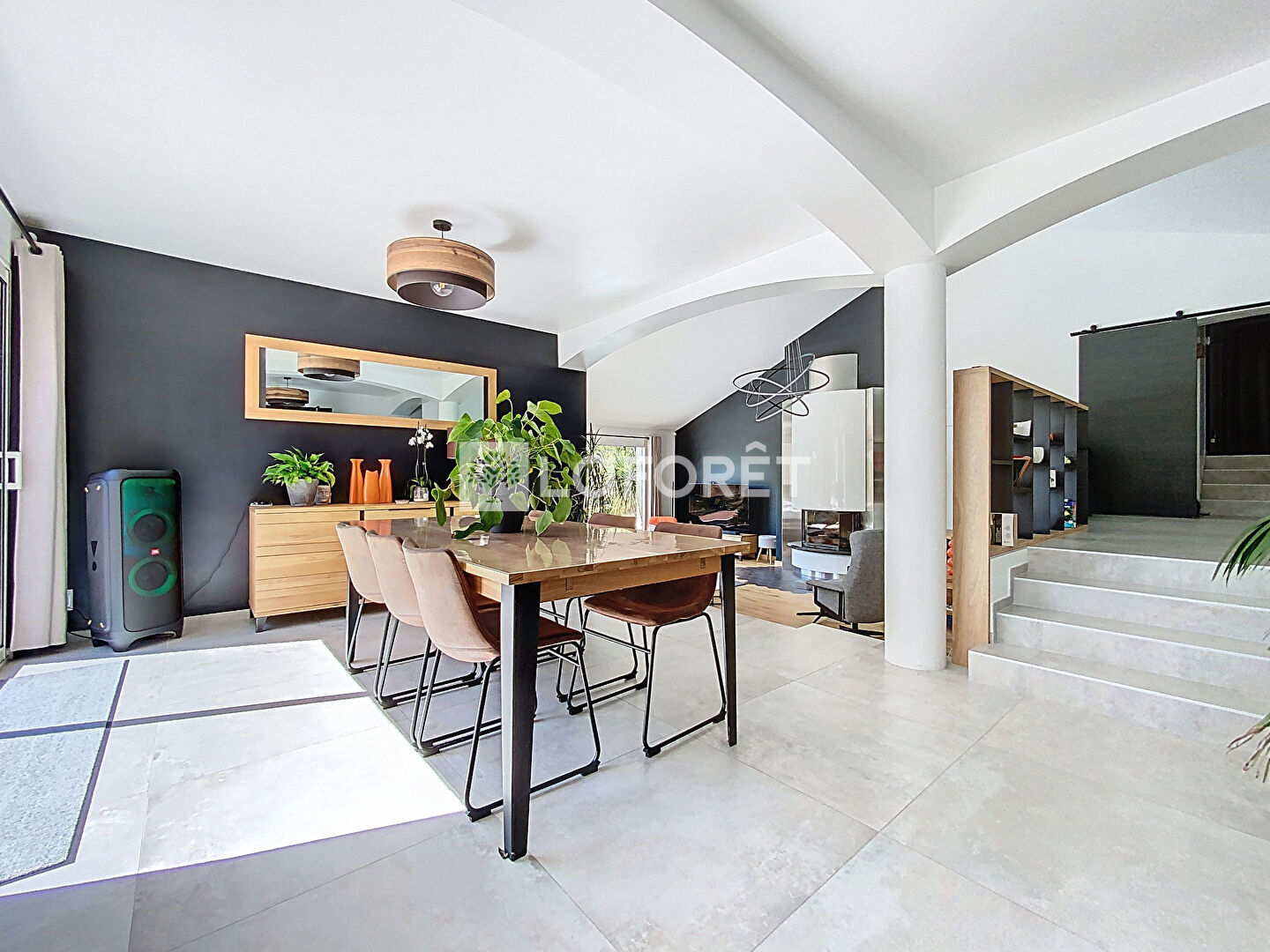 Dès l'entrée, les volumes généreux et la luminosité naturelle mettent en valeur une pièce de vie de plus de 50 m², pensée pour allier confort et convivialité. Elle se compose d'un salon raffiné avec cheminée, d'un espace réception et d'une cuisine haut de gamme, entièrement aménagée et équipée, prolongée par une lingerie fonctionnelle.
