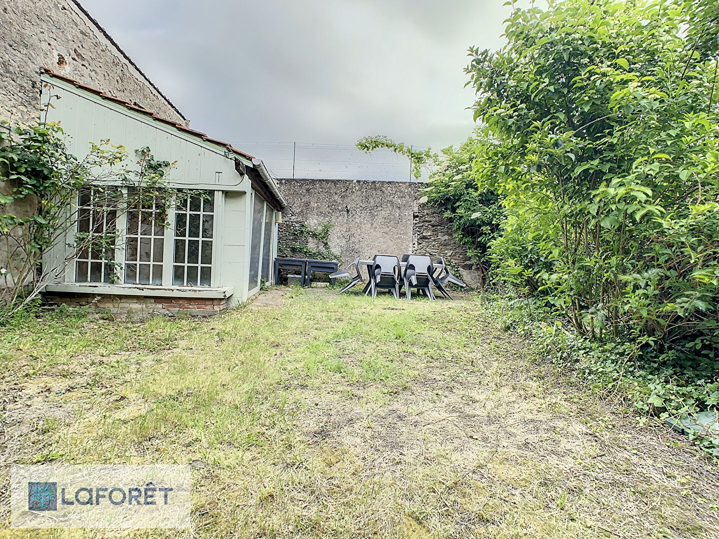Vous découvrirez un petit jardin clos de 80 m² environ avec une véranda de 10 m² , carrelée et espace pelouse pour les barbecues.