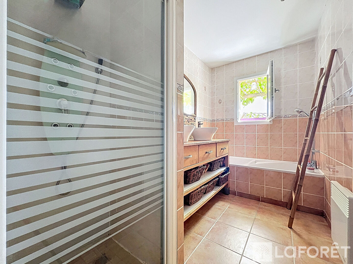 Côté nuit, un couloir dessert quatre chambres avec placards, une salle d'eau moderne équipée d'une douche et d'une baignoire, ainsi qu'un WC indépendant.