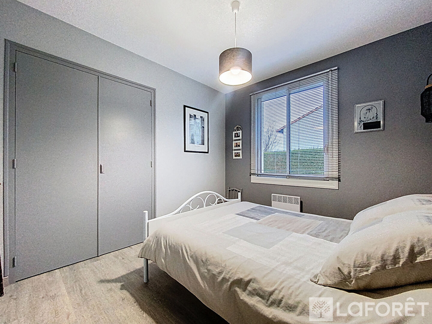 Elle se compose d'une entrée avec placard, d'un salon/salle à manger de 30 m² équipé d'un poêle à granulés et ouvert sur une terrasse sans vis-à-vis, ainsi que d'une cuisine aménagée et équipée.