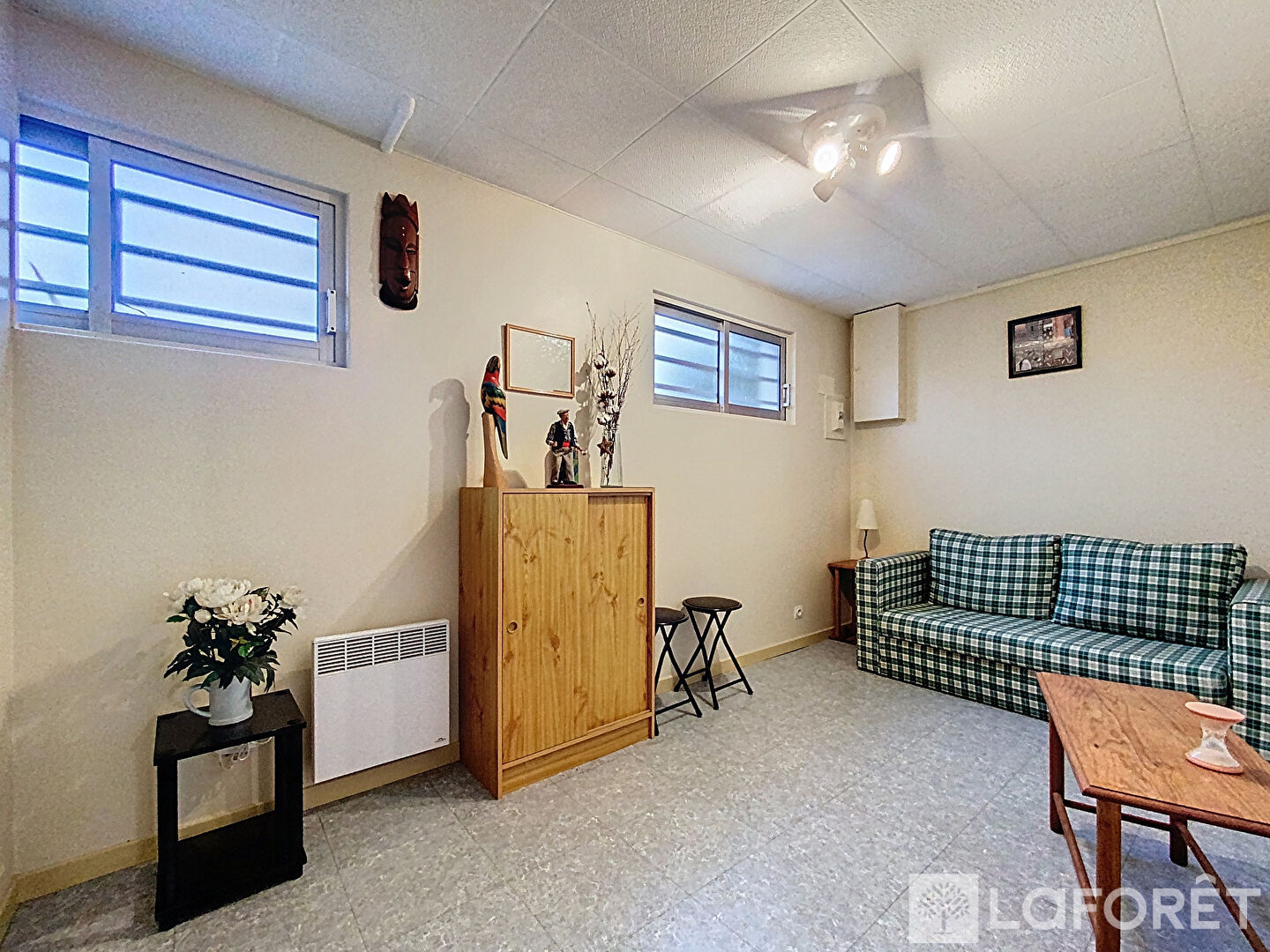 Le sous-sol total offre de très beaux volumes : un bureau avec salle d'eau, un WC indépendant, un grand garage, un espace atelier, une buanderie et une cave.
