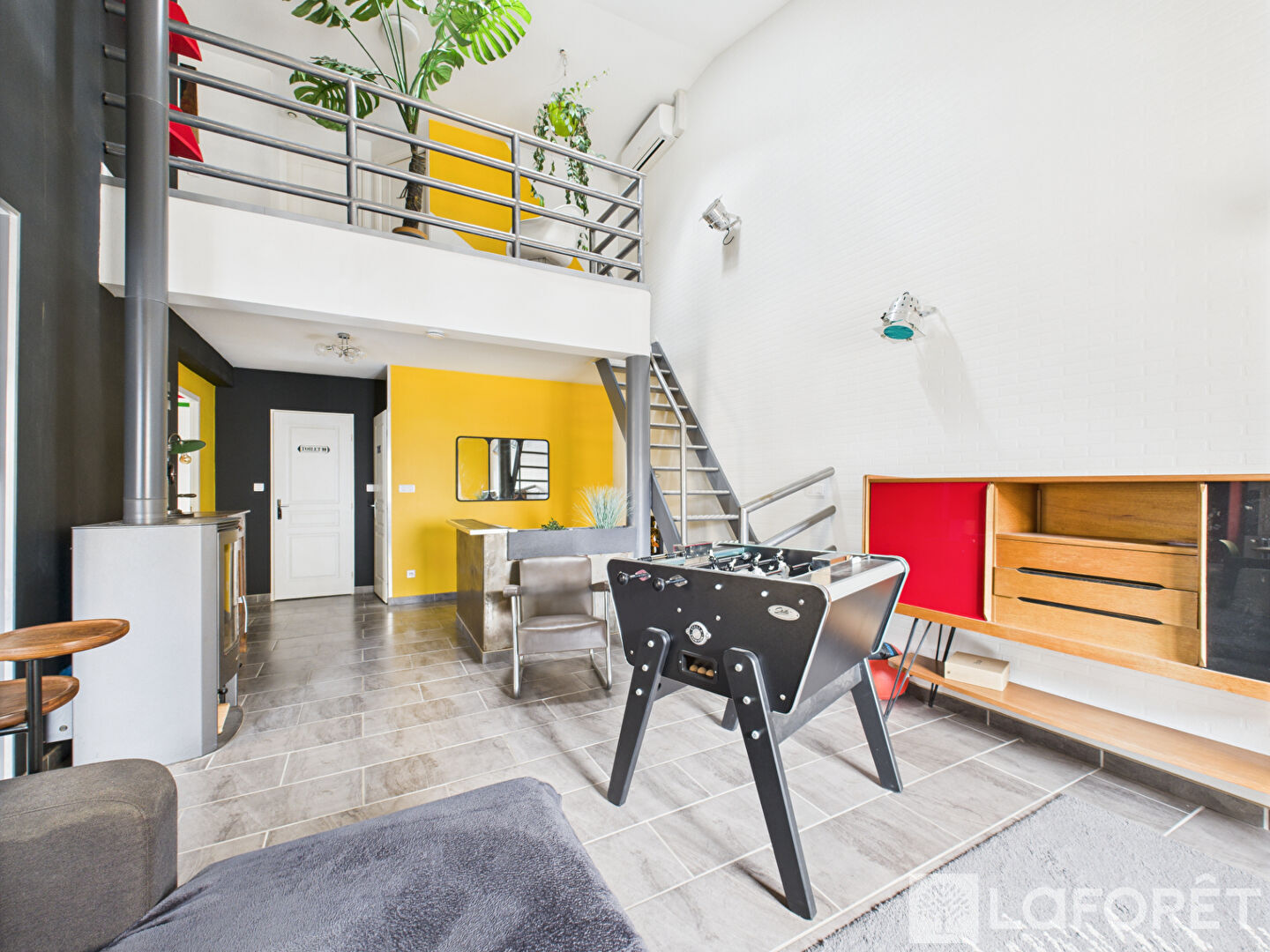2e étage : deux chambres, dressing aménagé, salle de bain avec baignoire et WC, mezzanine idéale pour un espace bureau ou détente.