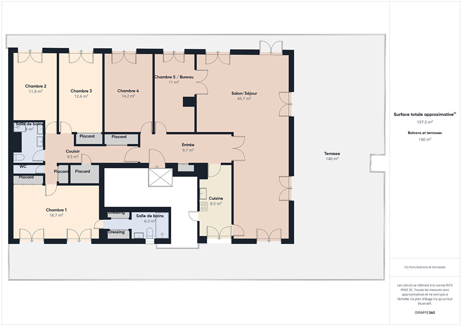 Accessible directement par un ascenseur privatif, il propose un vaste séjour lumineux de 45,67 m² ouvrant sur un rooftop-terrasse exceptionnel de 140 m², idéal pour profiter pleinement du panorama et vivre des moments uniques en plein ciel.