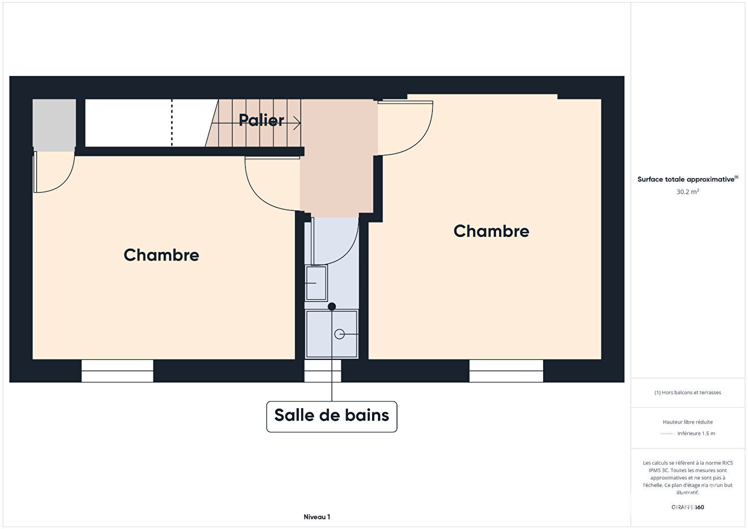 Étage : deux chambres avec plancher, salle d'eau et second W.C.