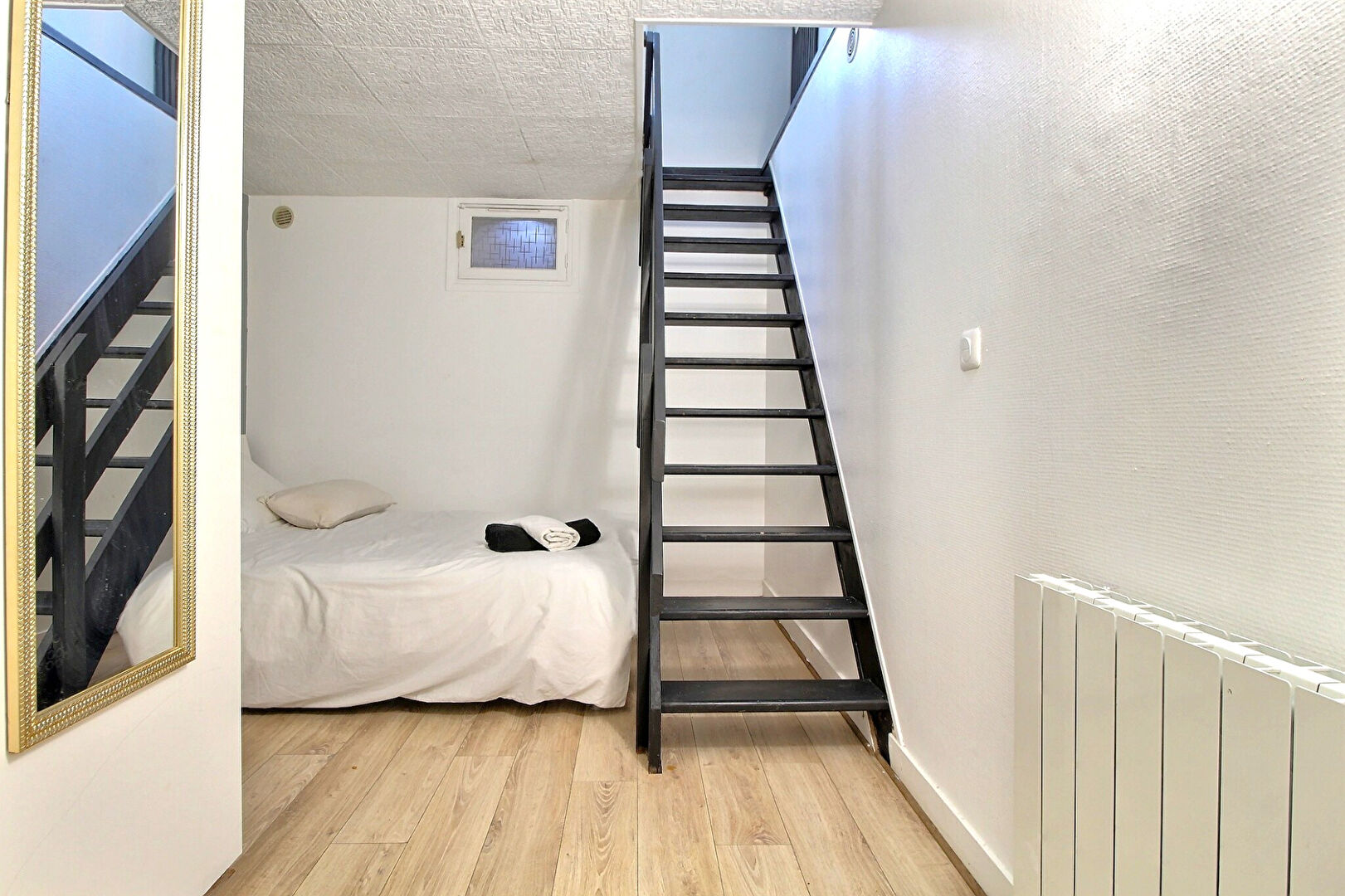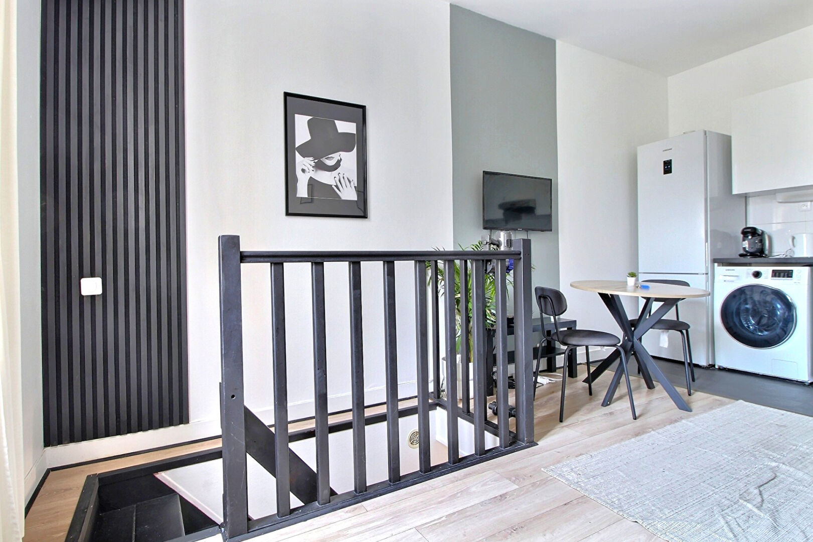 Cet appartement est composé : d'une entrée, d'un espace de vie, d'une cuisine ouverte qui s'intègre parfaitement au séjour, en empruntant un escalier vous pourrez accéder à l'espace nuit de l'appartement ou se trouver un chambre et une salle d'eau avec WC.