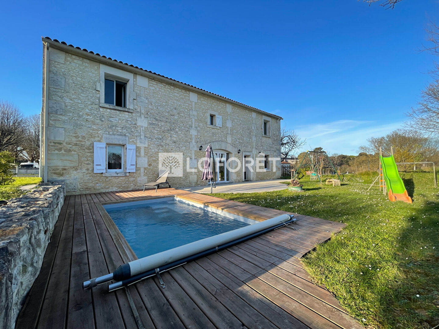 - En extérieur, un jardin plein sud avec une piscine au calme sans vis à vis.