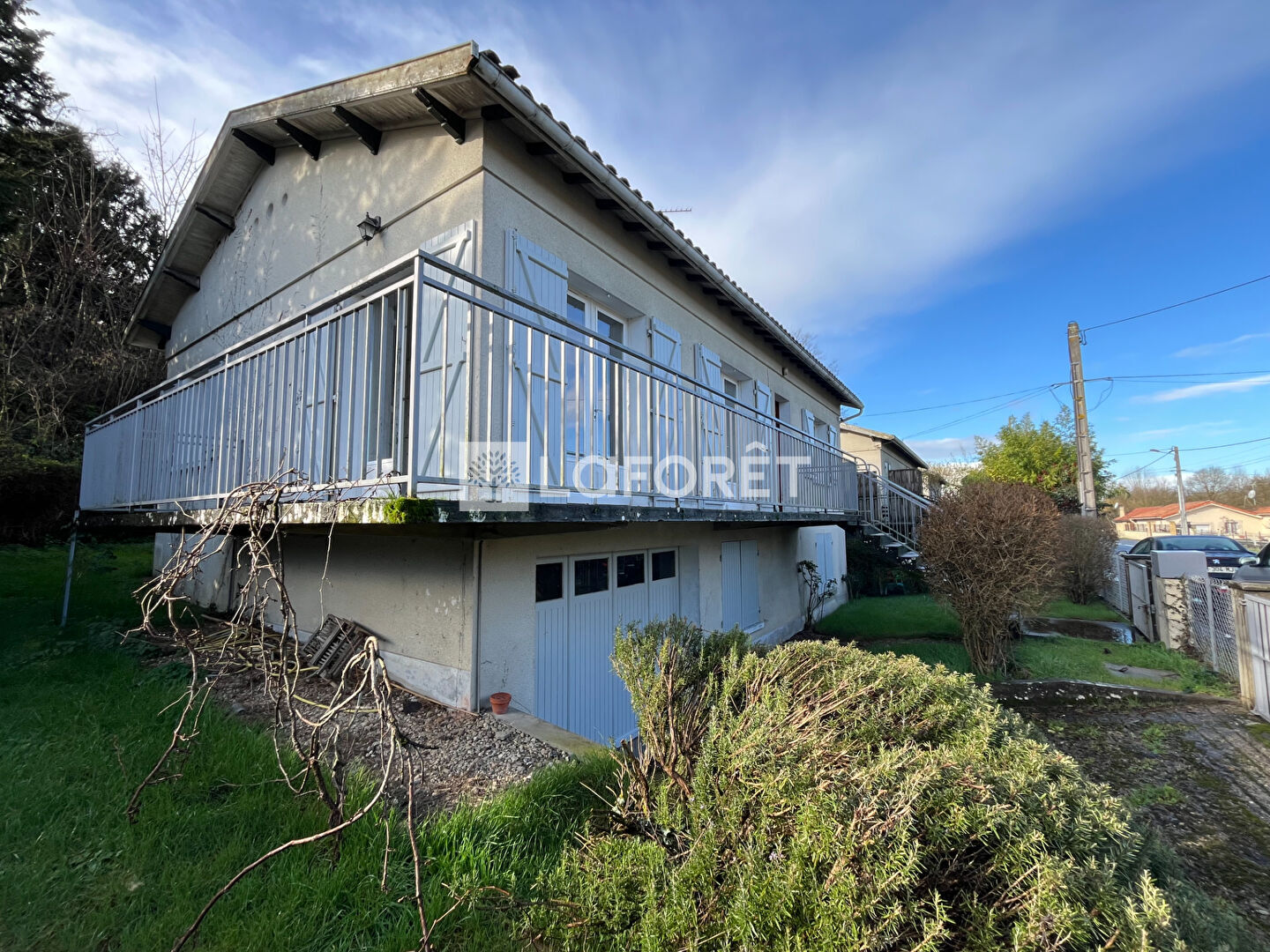 A l'étage, une entrée dessert une pièce de vie lumineuse avec balcon, une cuisine, 2 chambres avec rangements, une salle d'eau eu WC.
