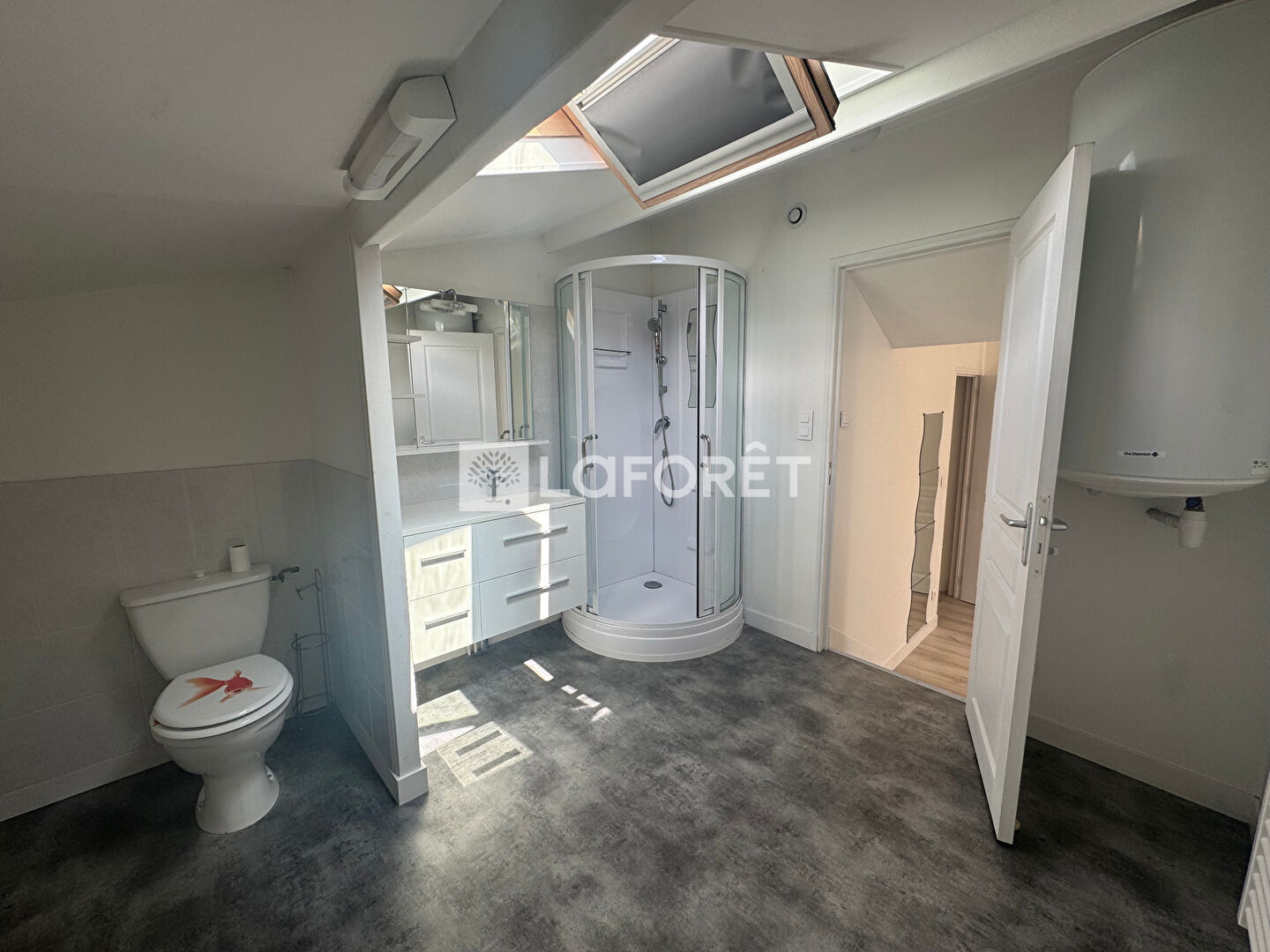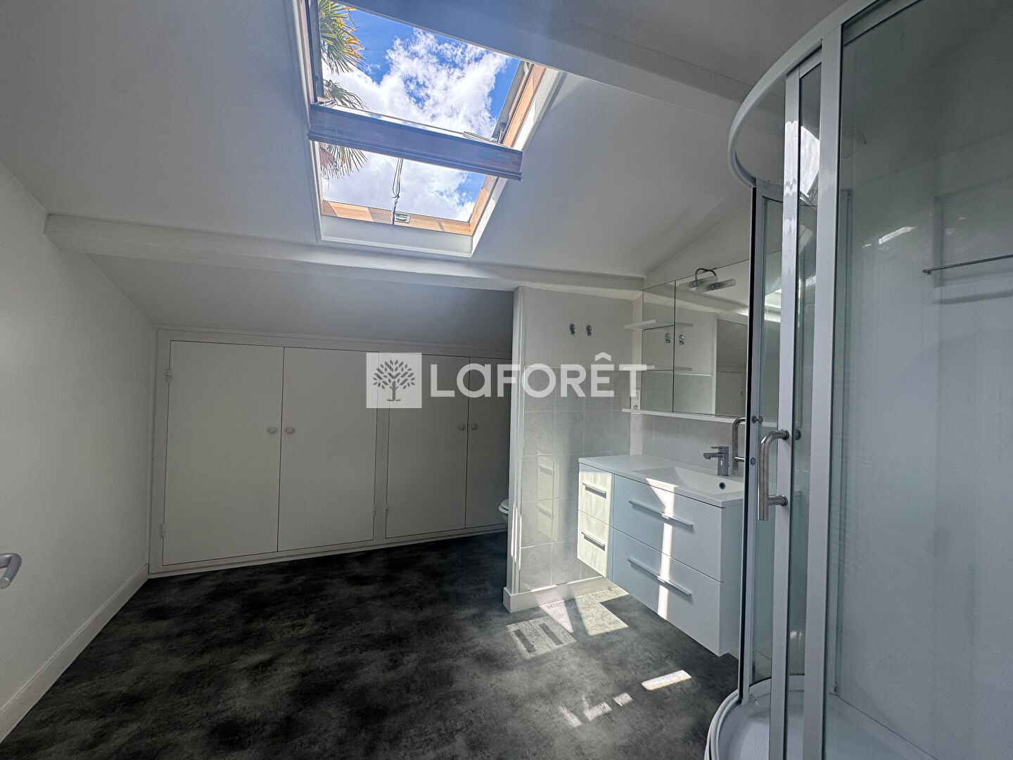 Au 1er étage : une chambre avec placards, une salle d'eau avec nombreux rangements, wc.