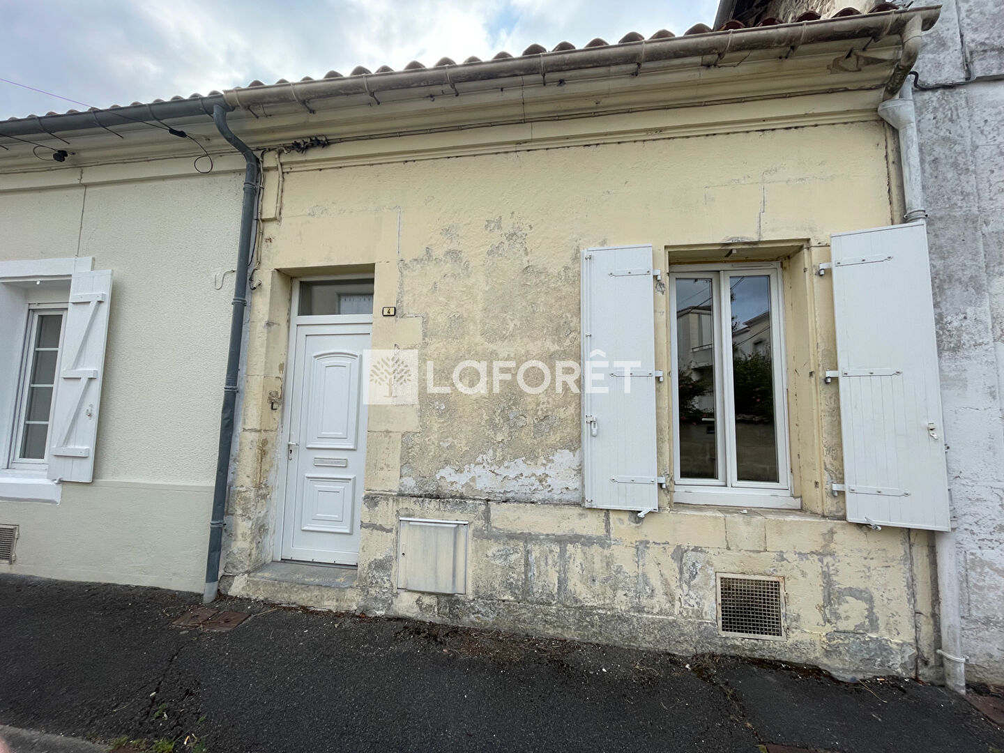 La maison a une petite cour extérieure.