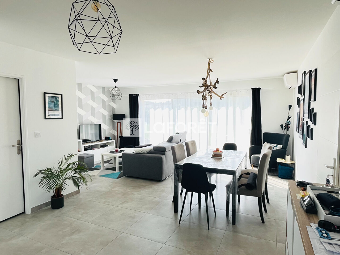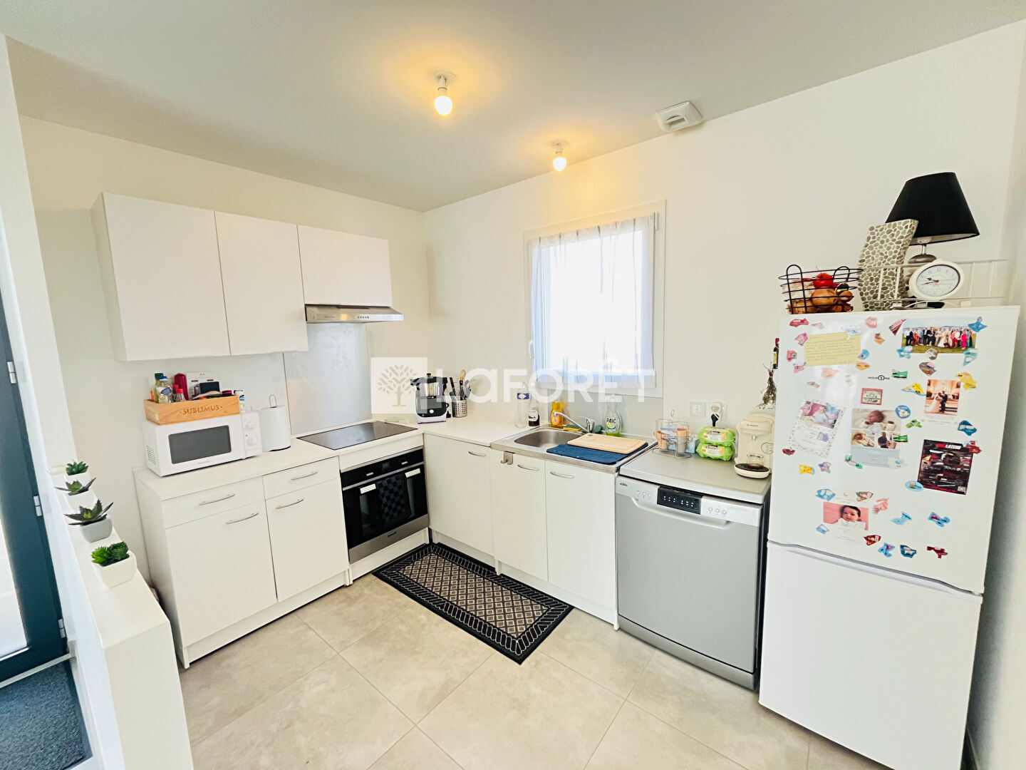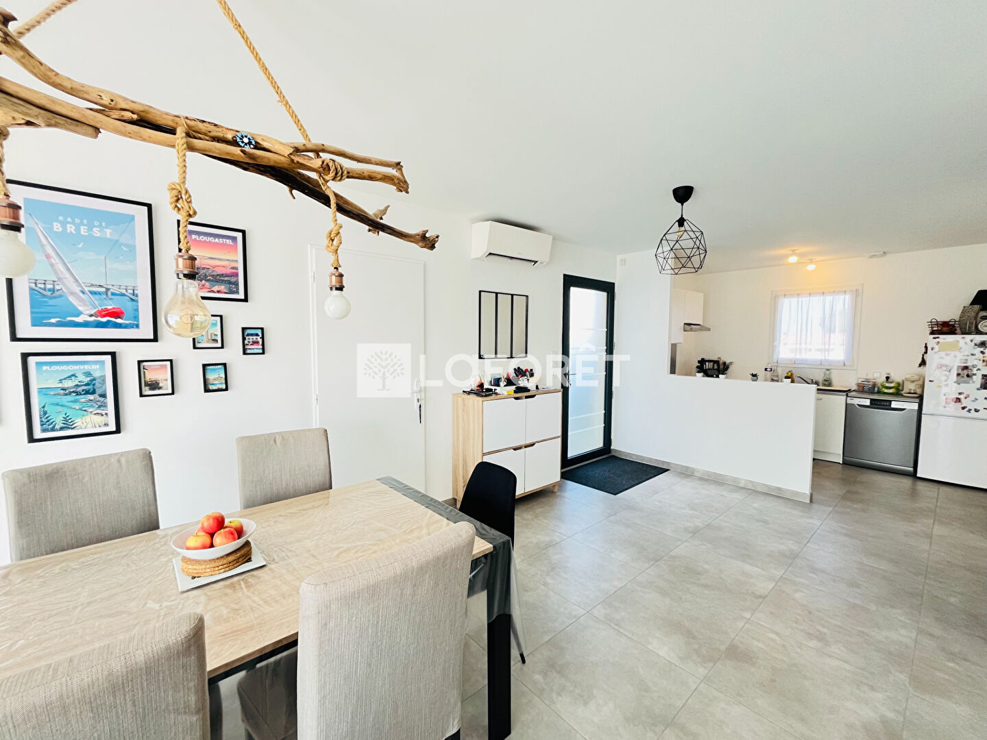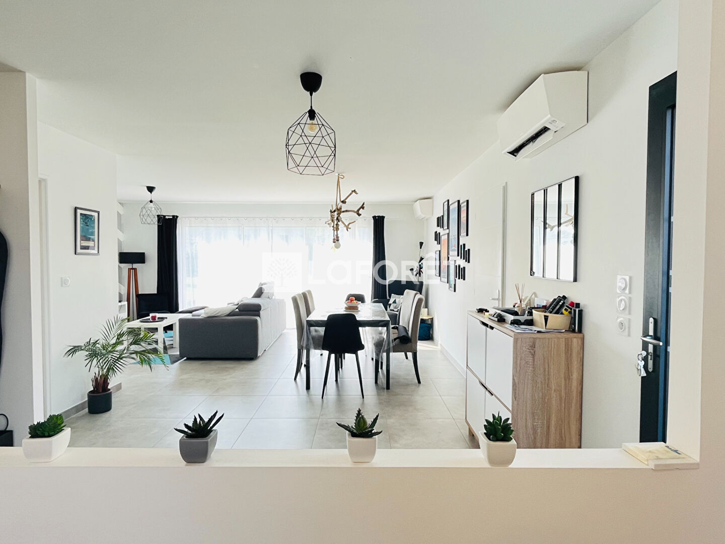 Entrée sur pièce de vie lumineuse avec salon/séjour, cuisine ouverte aménagée et équipée. Un cellier attenant.