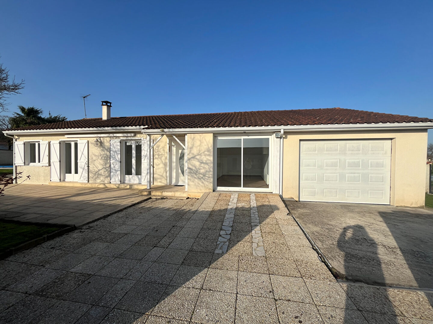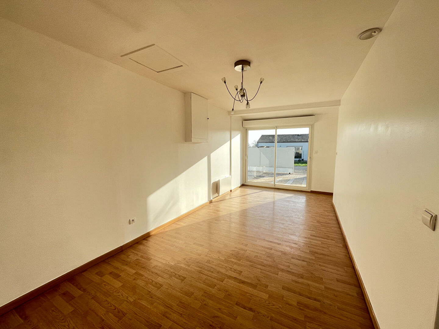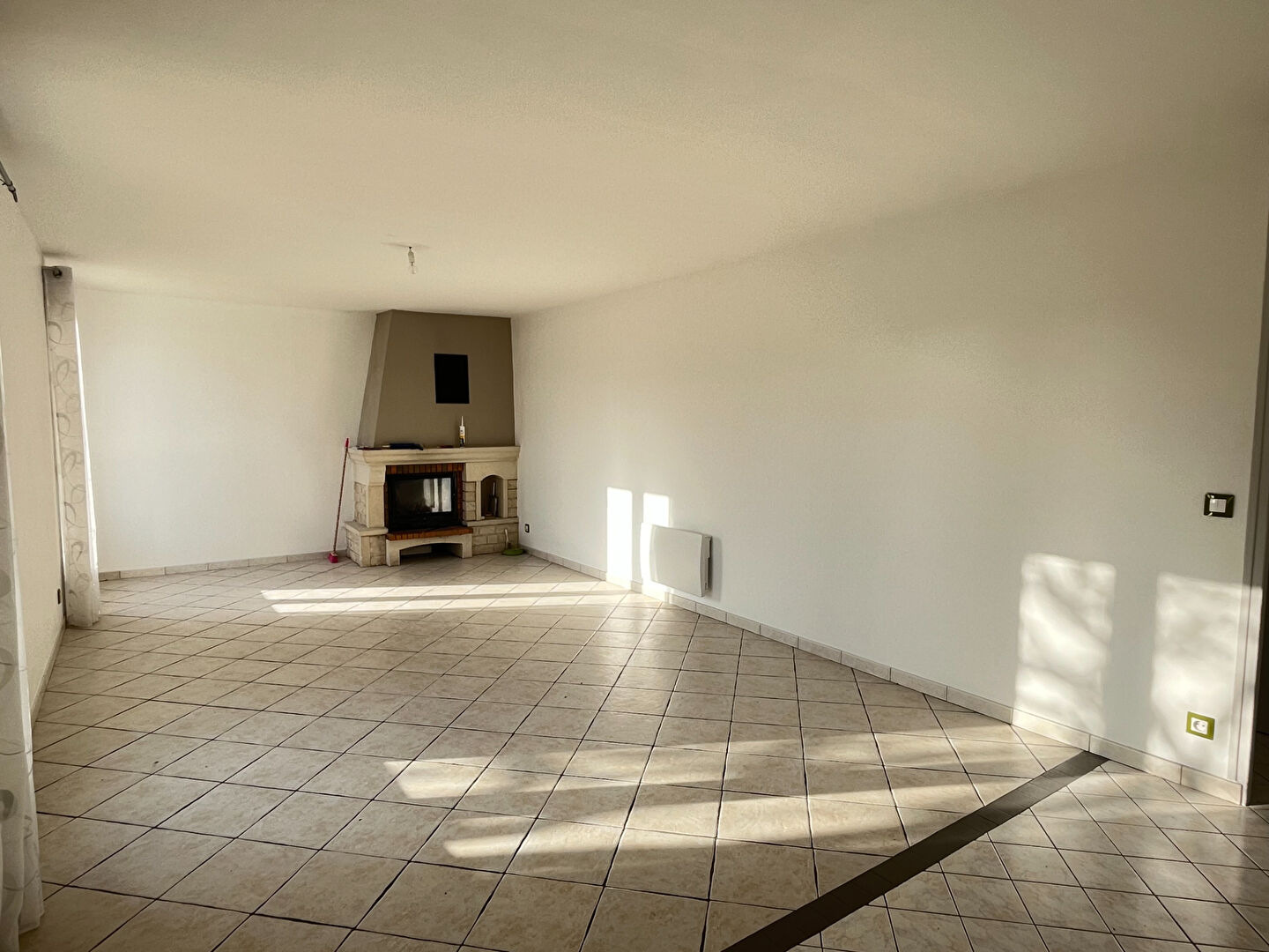 Entrée donnant sur pièce de vie lumineuse grâce à ses 2 portes fenêtres, et dotée d'une cheminée.
