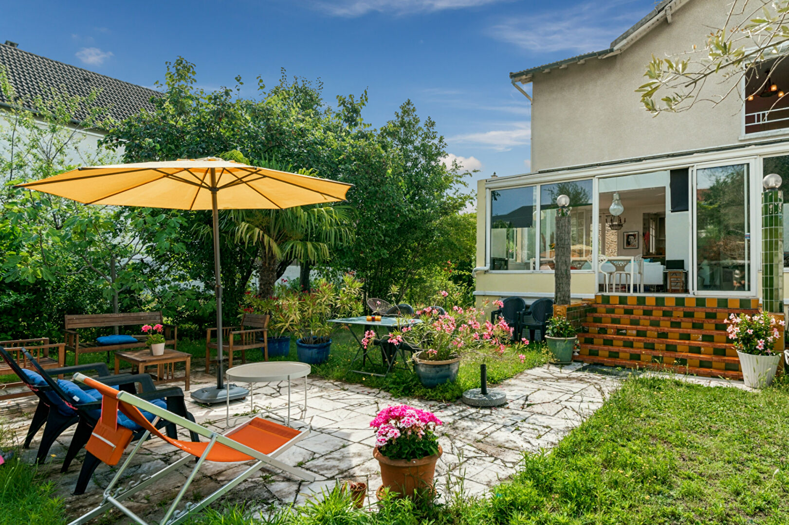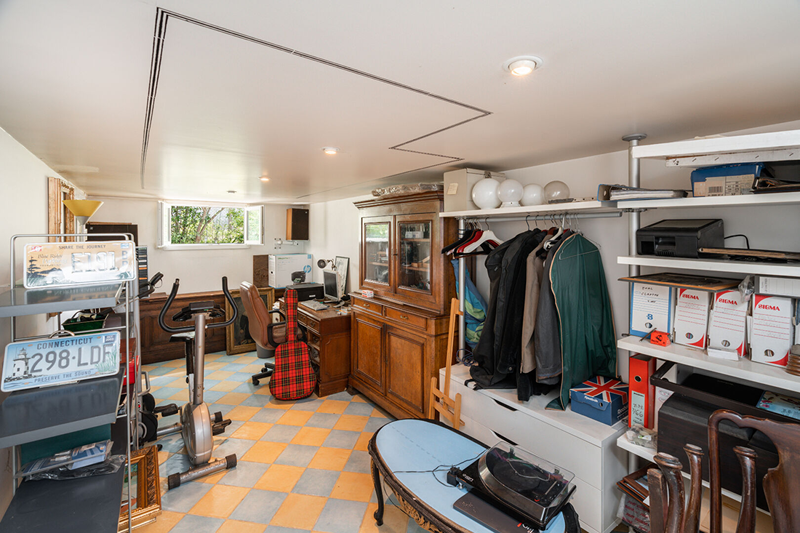 Cette maison dispose d'une pièce en sous-sol semi enterré qui est aujourd'hui aménagée en coin bureau.