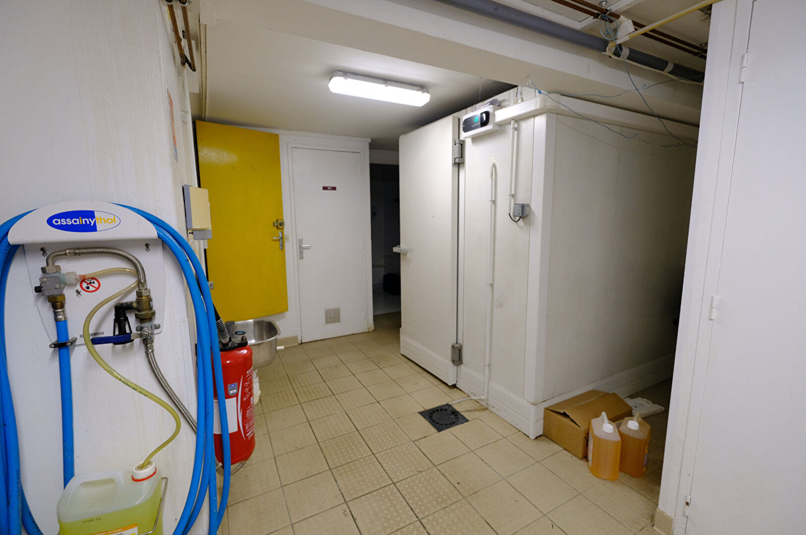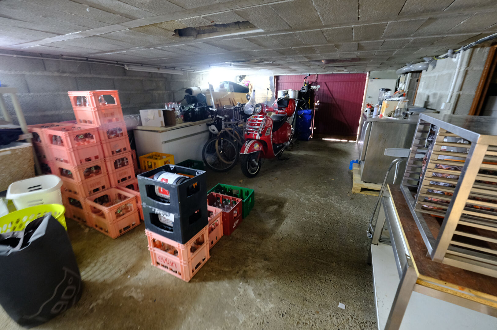 Sous-sol 103 m² accessible directement depuis la cuisine comprend quatre espaces réserves/caves, chambres froides, sanitaires et salle d'eau ainsi qu'une partie garage 32 m²