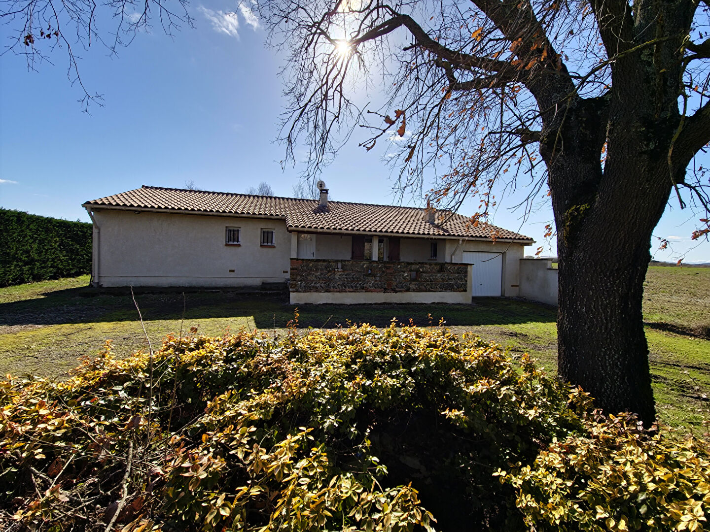 À Poucharramet, la propriété s'ouvre sur une grande parcelle de 5 830 m², arborée, avec de belles respirations autour de la maison.
