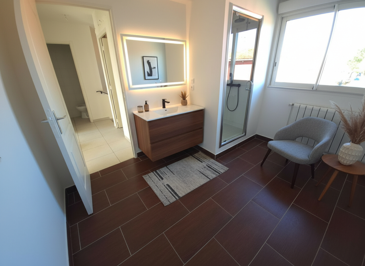 Conçue pour répondre aux besoins du quotidien, elle dispose d'une chambre au rez-de-chaussée, parfaite pour un bureau, une suite d'amis ou une chambre parentale selon vos envies. À l'étage, trois autres chambres accueillent toute la famille, garantissant à chacun son espace personnel.