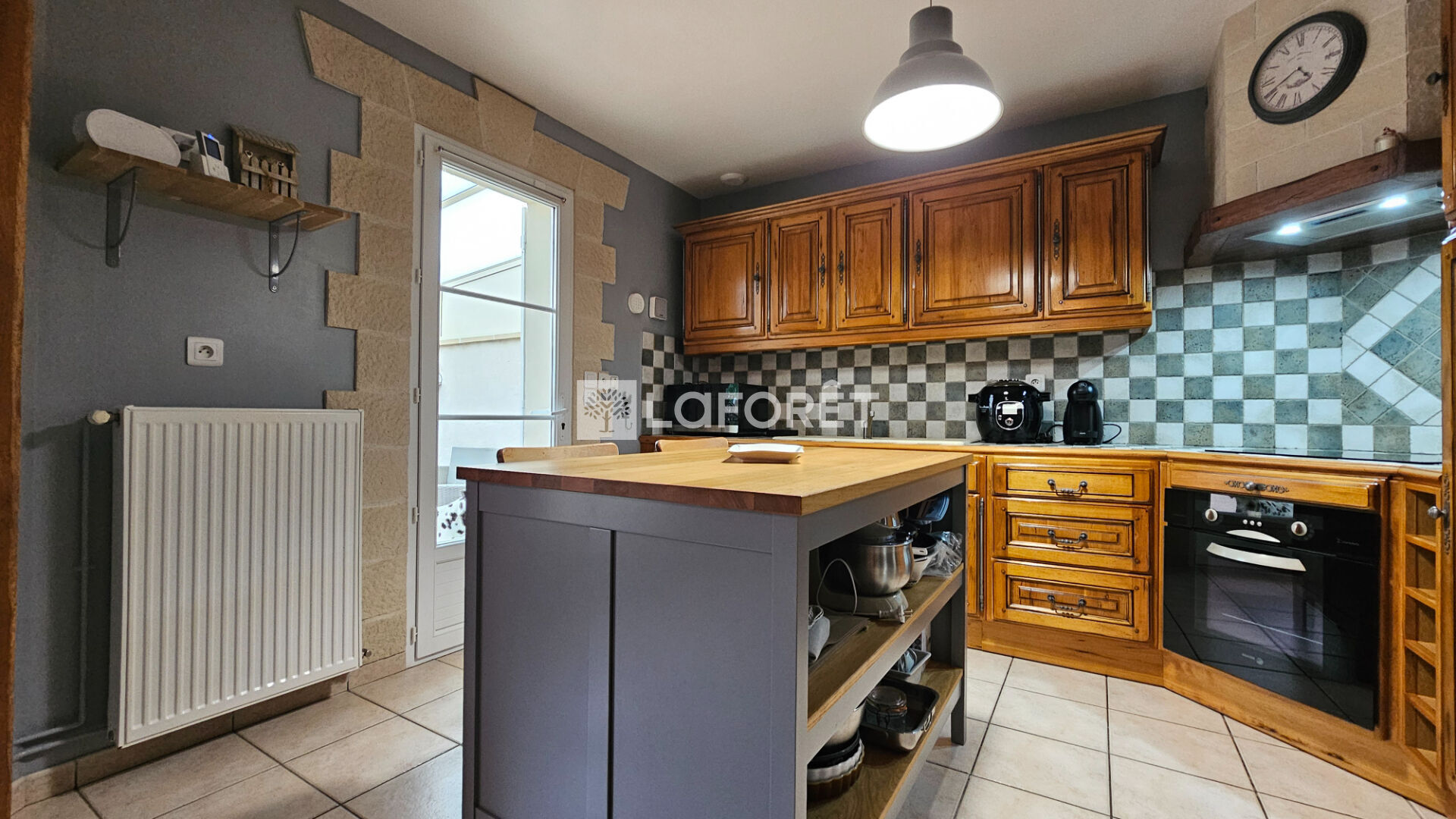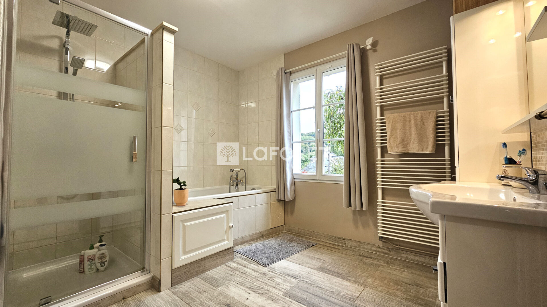 - Rez-de-chaussée : entrée, cuisine de 12 m² ouverte sur salle à manger et salon en L de 32 m² avec cheminée, salle de bain avec baignoire et douche, WC séparés.