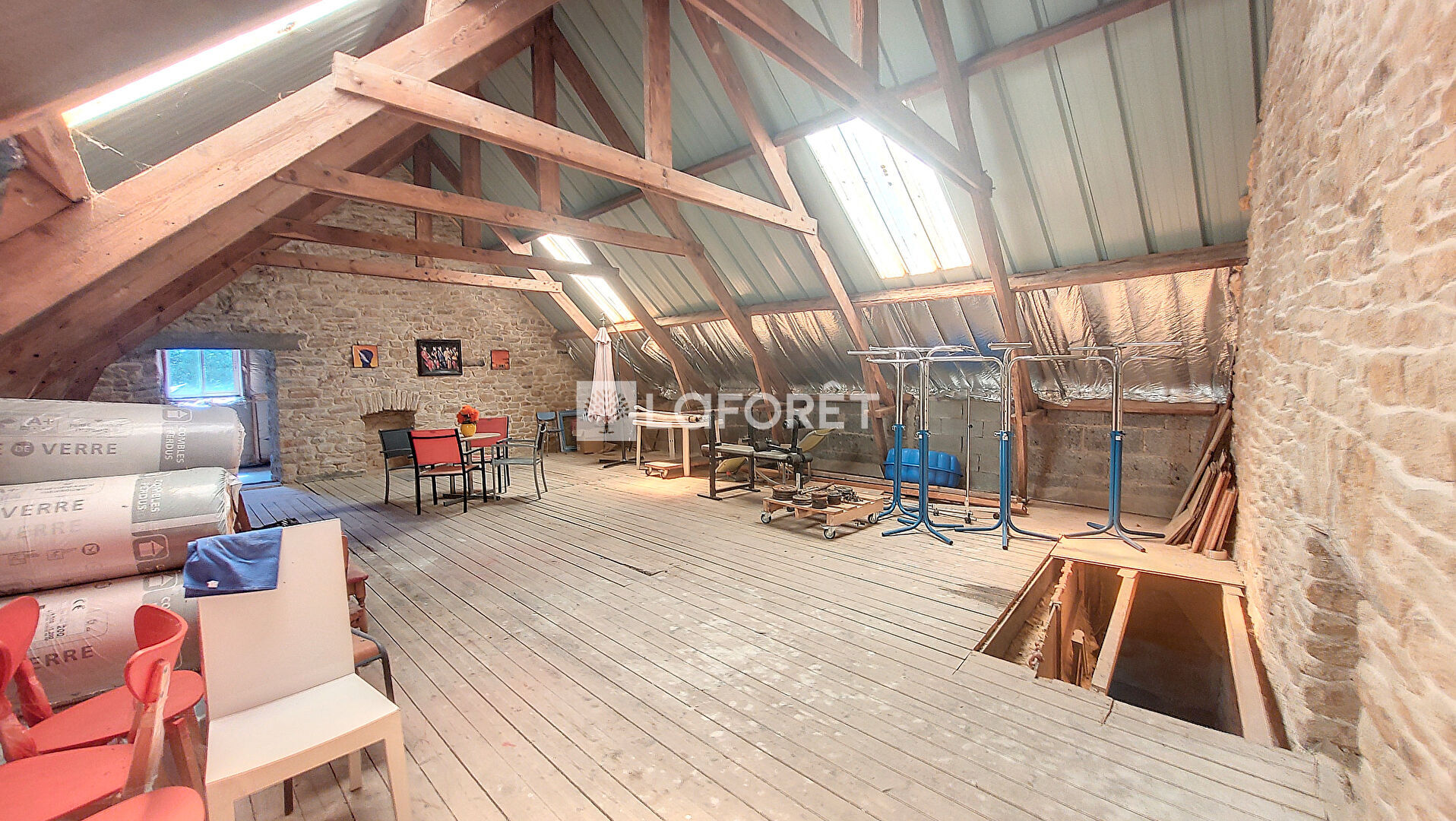 BEAUCOUP DE POTENTIEL pour ce bâtiment en pierres à rénover. D'une superficie de 280m² env. il comprend au RDC : un garage, un atelier, une réserve et deux pièces d'habitation. A l'étage : deux grandes pièces à l'état brut et accès sur une terrasse ensoleillée.