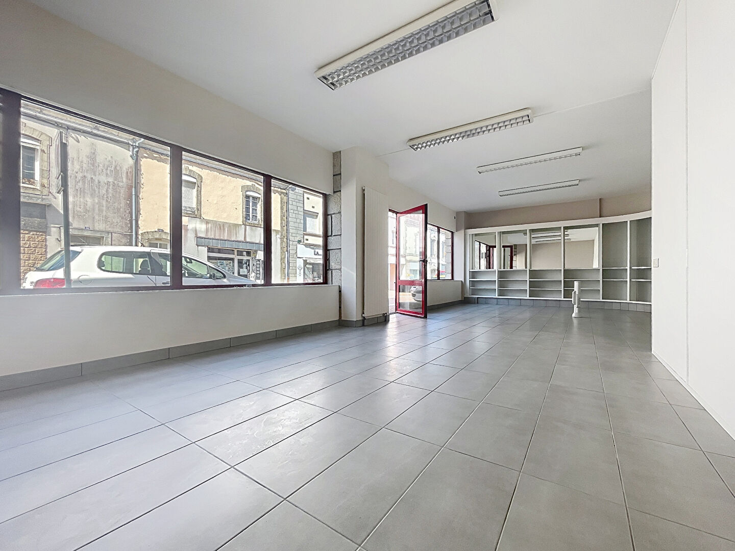 Local commercial d'environ 140 m² , offrant une elle visibilité étant sur un axe très passant proche de la gare. Il comprend une première grande pièce à l'entrée, suivi d'un dégagement desservant deux pièces séparées d'une vitre, un hall donnant sur la cour extérieure, wc et petite pièce de rangement avec arrivée et évacuation d'eau.