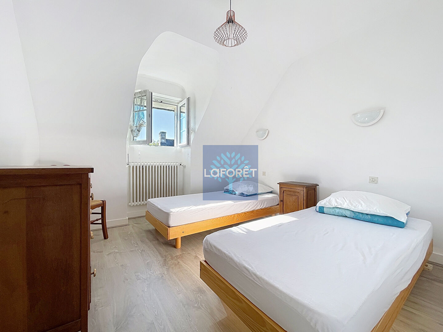 Située tout proche du bourg et au calme, cette maison meublée offre au rez de chaussée : entrée, cuisine aménagée et équipée, salon séjour, bureau (ou petite chambre), wc, salle d'eau. A l'étage : trois chambres, salle de bains, wc.