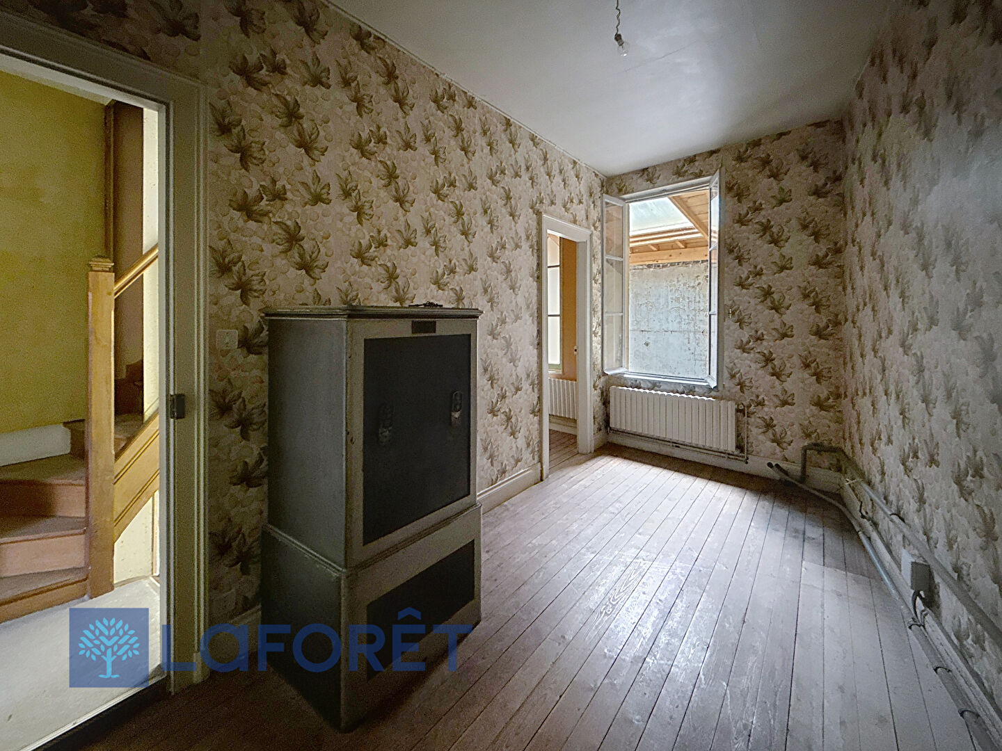 Au 1er étage, vous y trouverez un espace habitation comprenant 2 pièces et une salle de bains. Le 2ème étage offre 2 pièces à aménager.