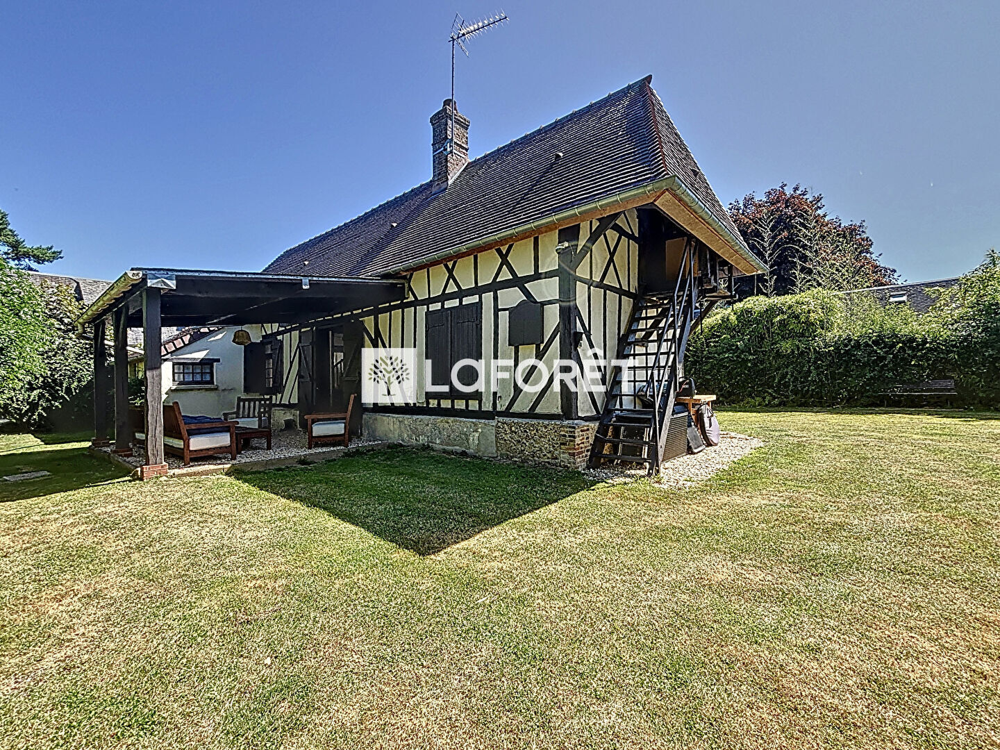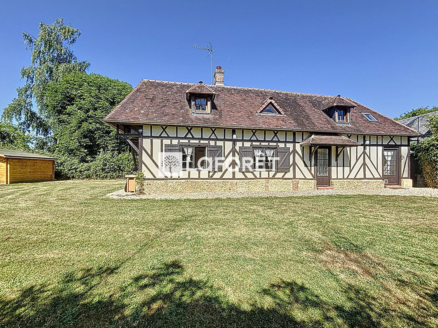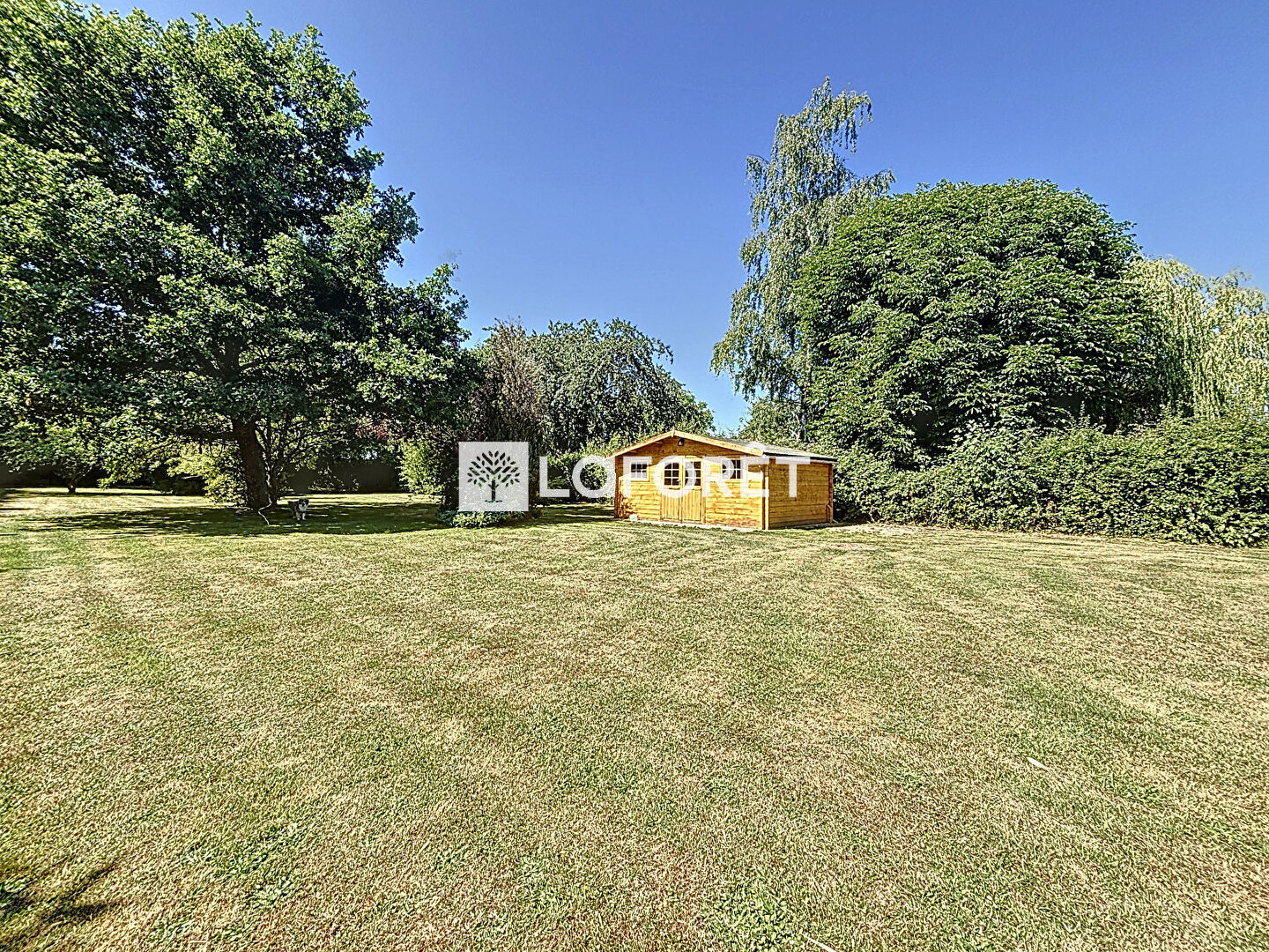 A l'extérieur, vous profiterez d'un jardin clos et joliment arboré de 1850 m² comprenant une dépendance, un chalet sur dalle de 19 m² avec électricité et une terrasse couverte parfaite pour profiter des soirées d'été.