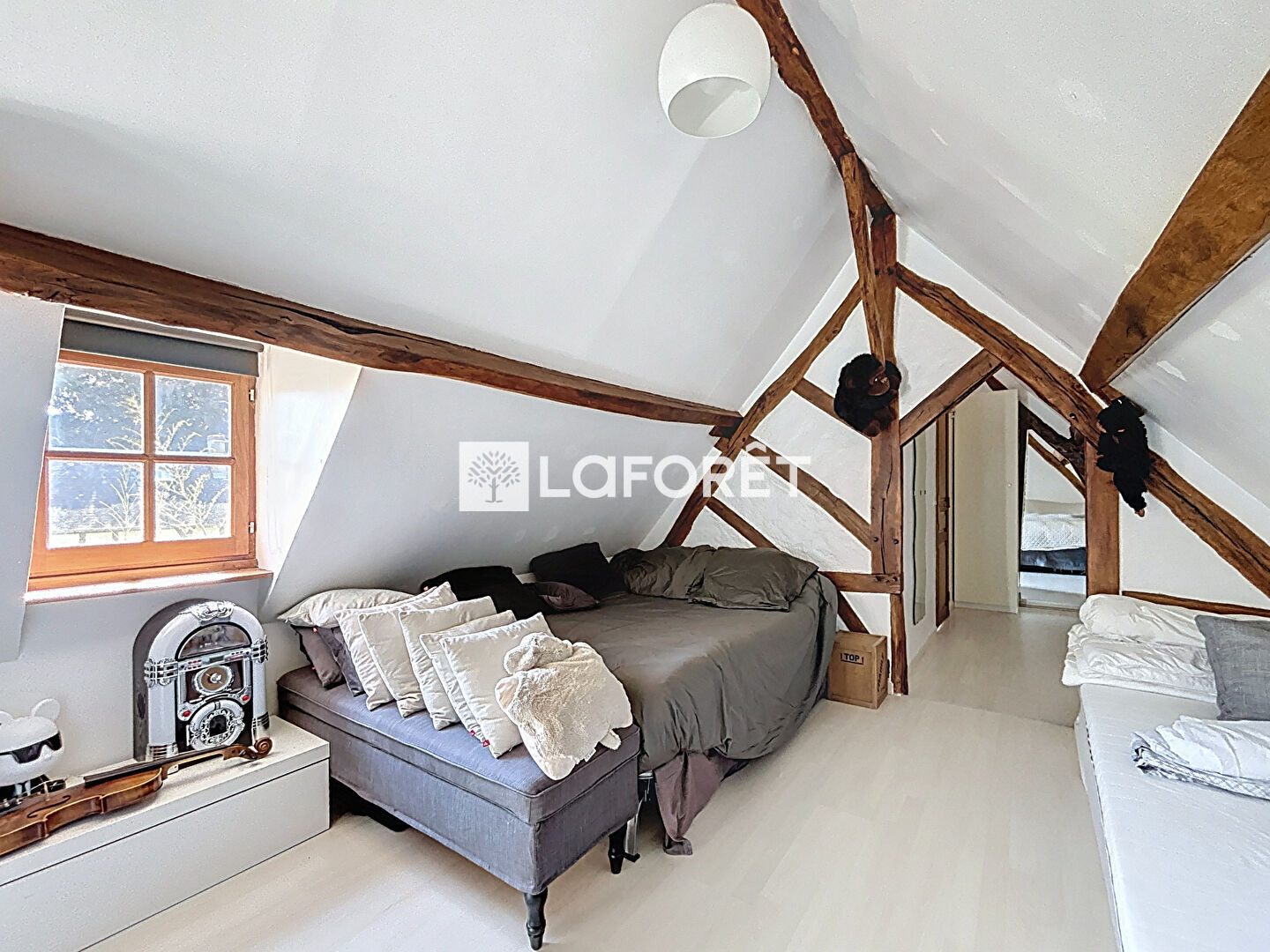 A l'étage, un palier dessert deux chambres supplémentaires ainsi qu'une seconde salle de bains, parfaite pour accueillir famille et amis.